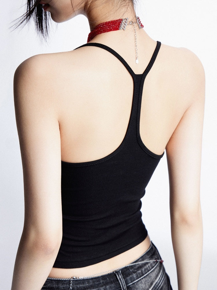 キャミトップ カップ バックレス グラマラス ブラック/ホワイト スクープネックライン パッド入り