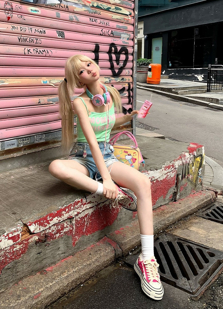 ピンクと白のオールドスクールロリータファッションドレス、蝶結びディテール、ロリータJSKセット