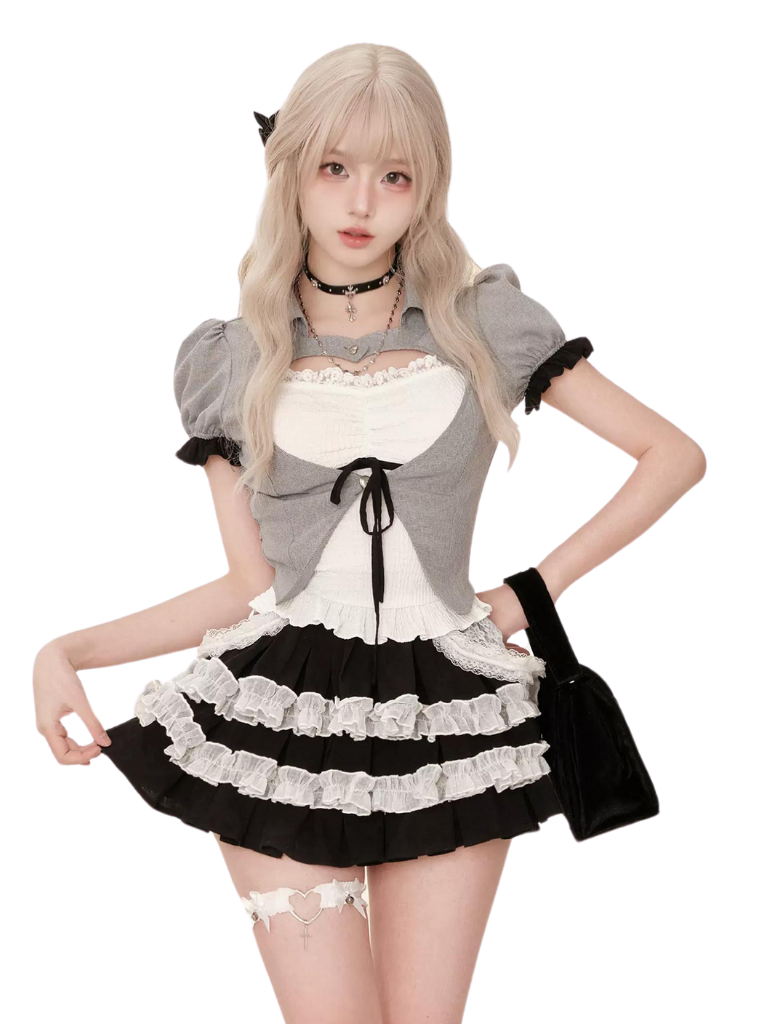 このキュートなキャミソールケーキセットは、白と黒のラブトップとグレーのサマースカートがセットになっており、夏の日にぴったりです。トップスには楽しいアルファベットデザインがあしらわれ、スカートは快適でスタイリッシュなフィット感です。このマストハブセットで、可愛くファッショナブルに過ごしましょう!