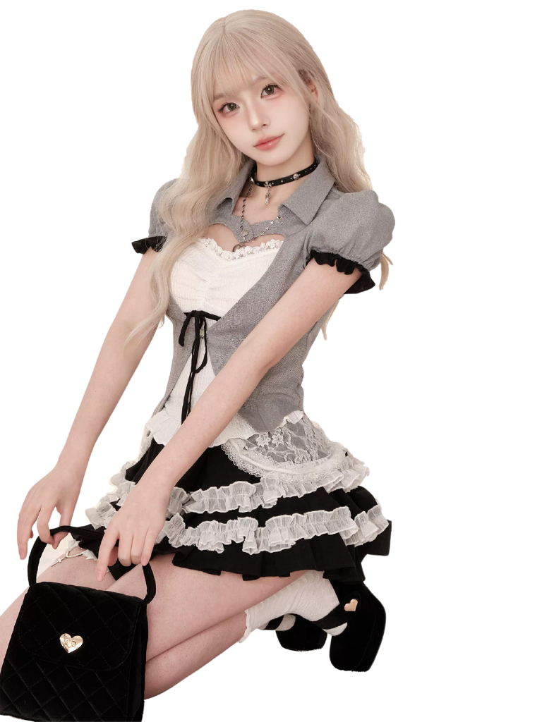 黒と白のオールドスクールロリータファッションドレス蝶結びロリータJSKセット