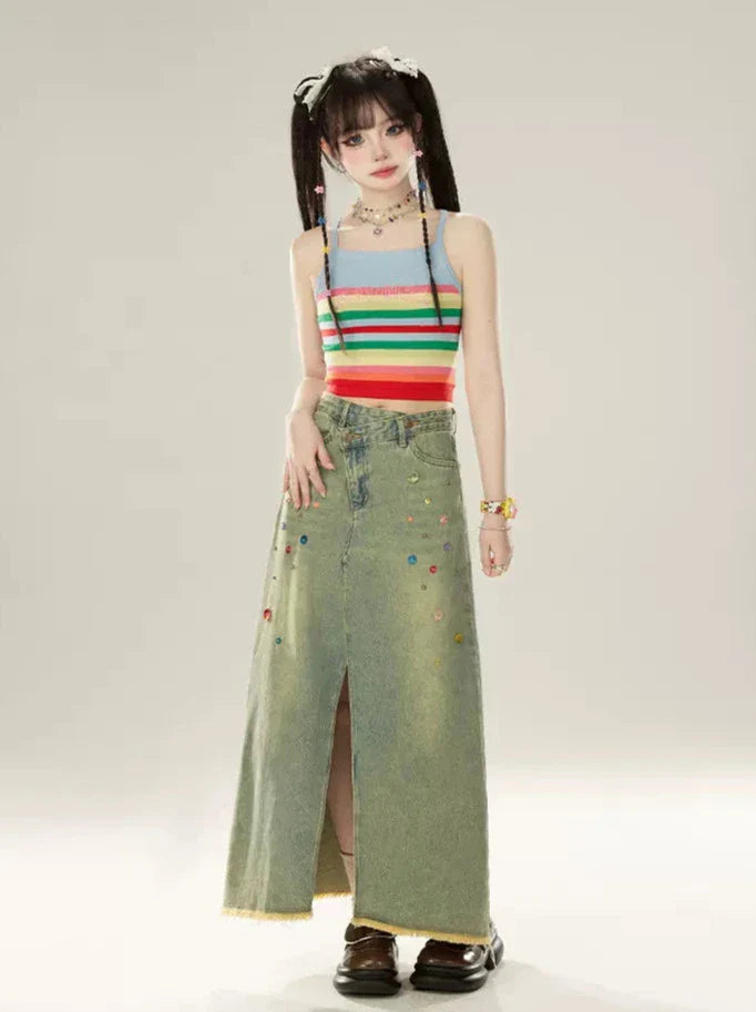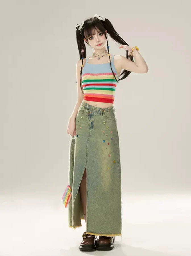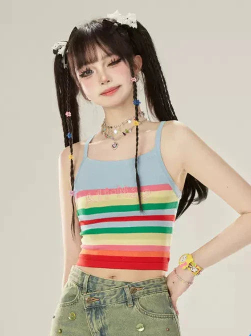 この愛らしいコントラストカラーのレインボーストライプキャミソールで、みんなの羨望の的になりましょう!鮮やかなレインボーストライプが、このキュートなトップスに鮮やかな彩りを添えます。晴れた日や楽しいお出かけにぴったりで、ワードローブを明るく彩ってくれること間違いなしです。この素敵なキャミソールで、あなただけの個性的なスタイルをアピールしましょう。