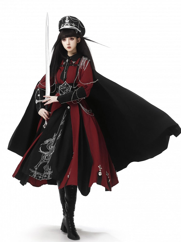 黒と白のオールドスクールロリータファッションドレス蝶結びロリータJSKセット