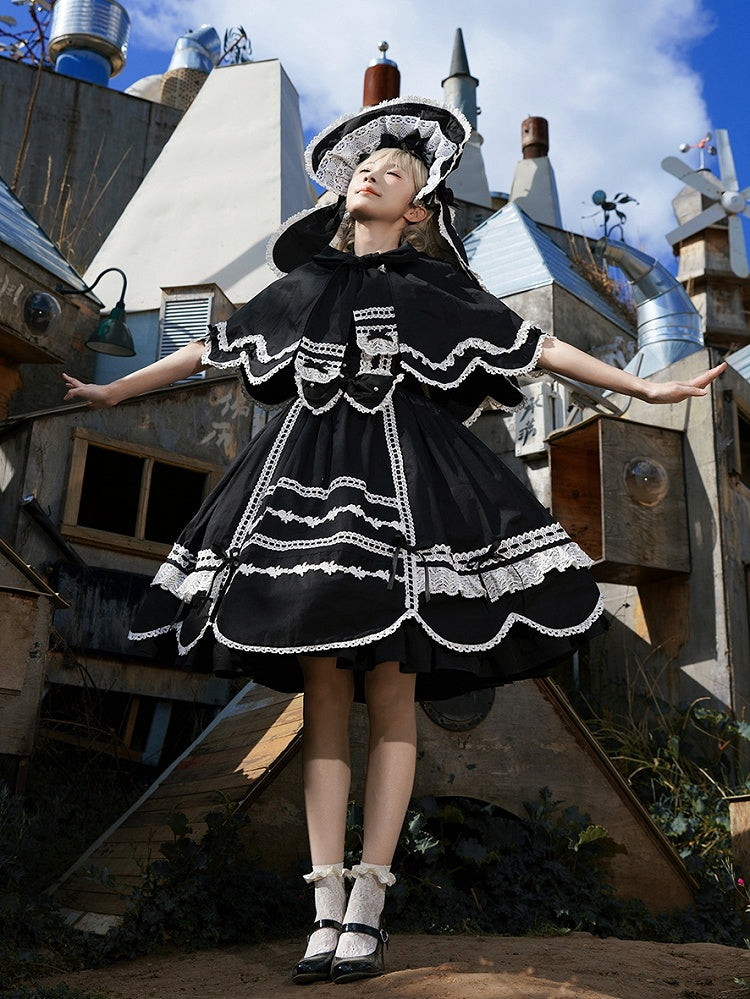 黒と白のオールドスクールロリータファッションドレス蝶結びロリータJSKセット