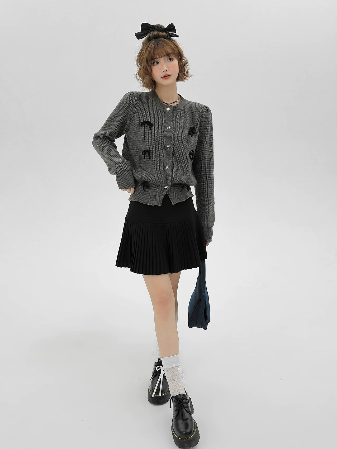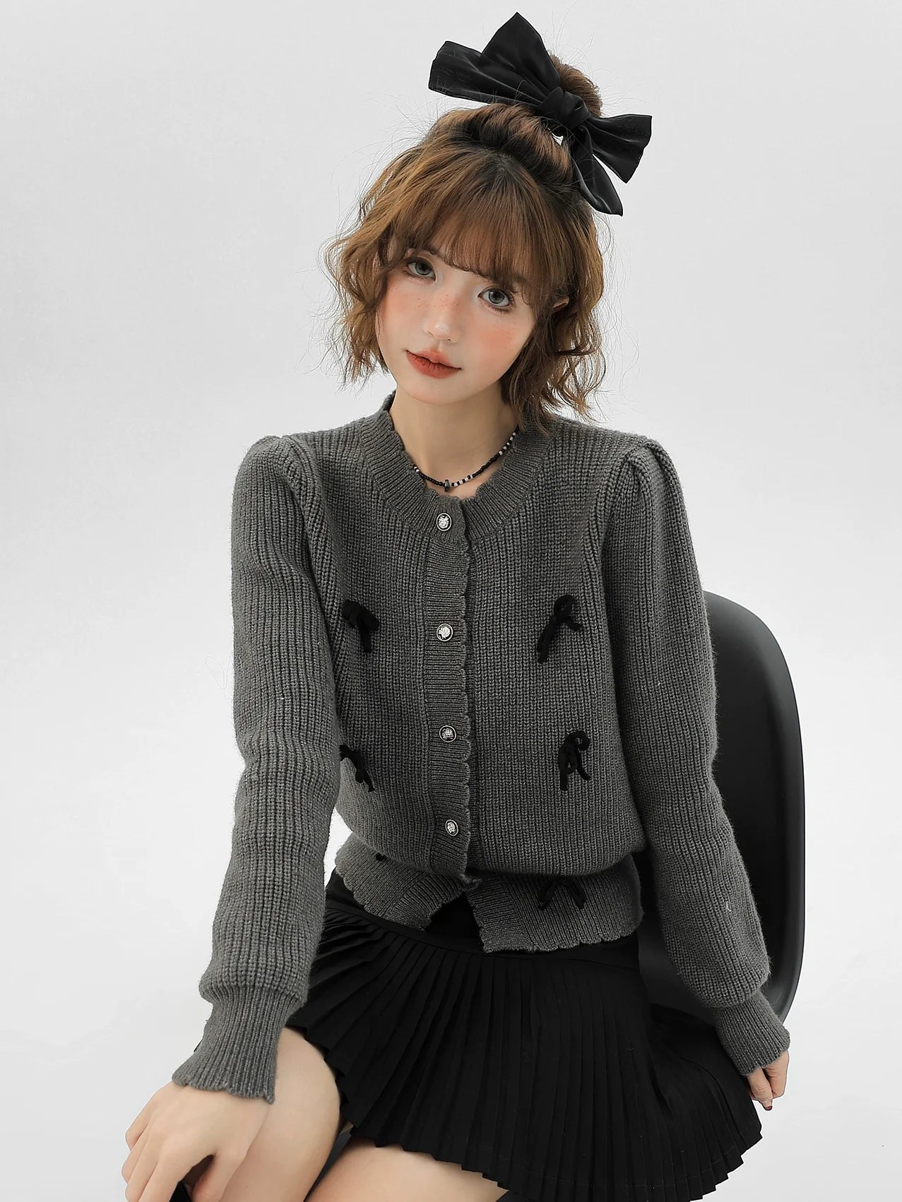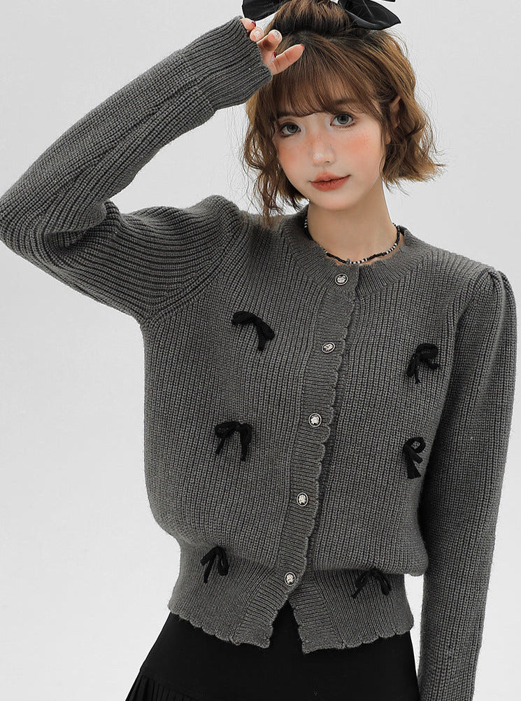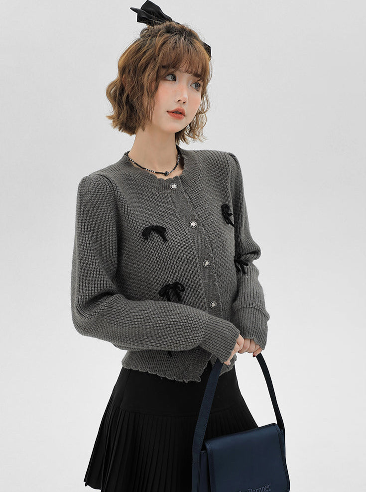 グレーのニットフレンチリボンカーディガンで、心地よくスタイリッシュに。この素敵なカーディガンは、快適なニットデザインとチャーミングなフレンチリボンのアクセントが特徴です。どんなワードローブにもぴったりの万能アイテム。ファッションに敏感な方にとって、マストハブアイテムとなるでしょう。