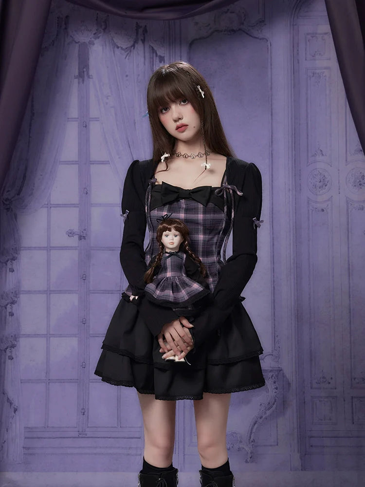 黒と白のオールドスクールロリータファッションドレス蝶結びロリータJSKセット