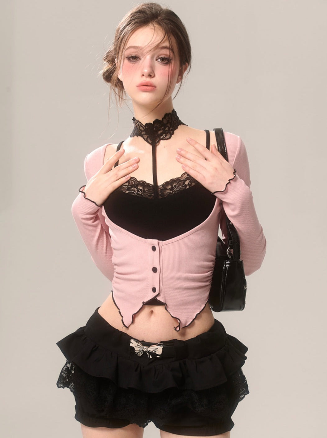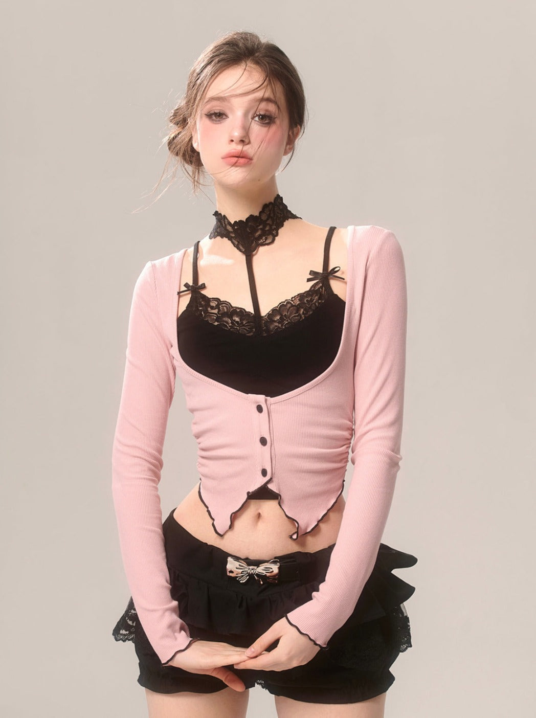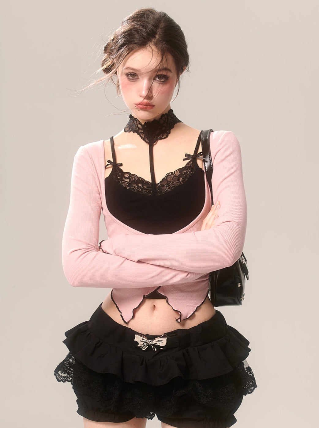 ピンクと白のオールドスクールロリータファッションドレス、蝶結びディテール、ロリータJSKセット