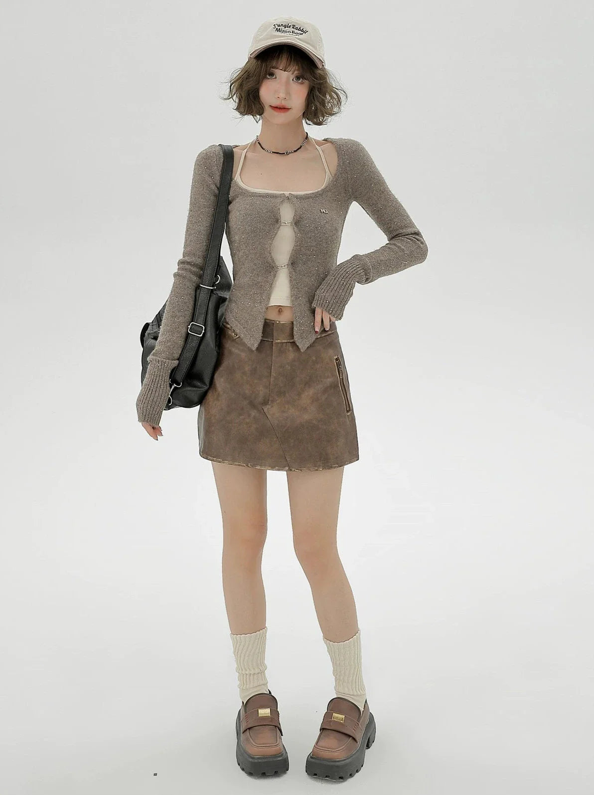 カーディガントップ レトロ サスペンダー スリム シャイニー アメリカン