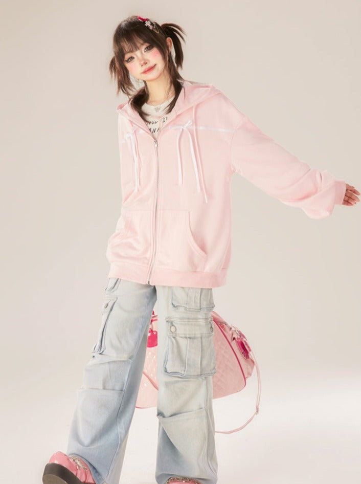 ピンクと白のオールドスクールロリータファッションドレス、蝶結びディテール、ロリータJSKセット
