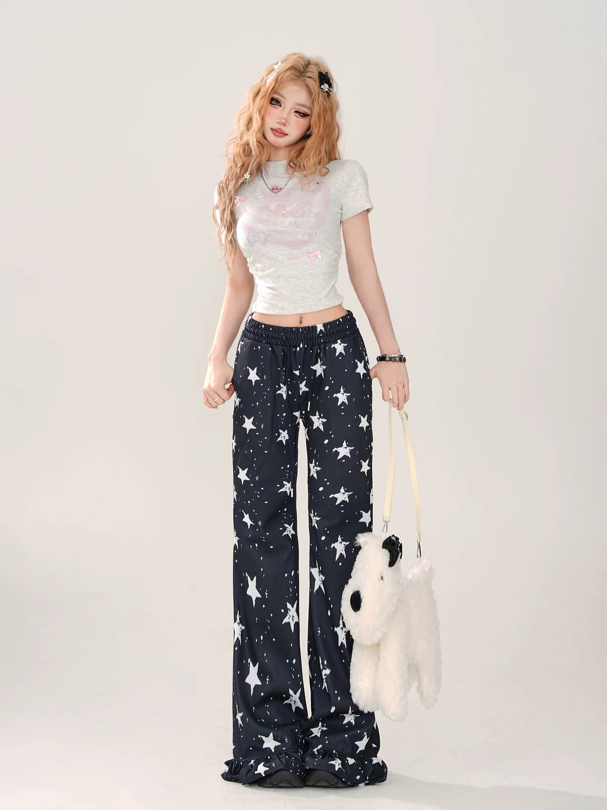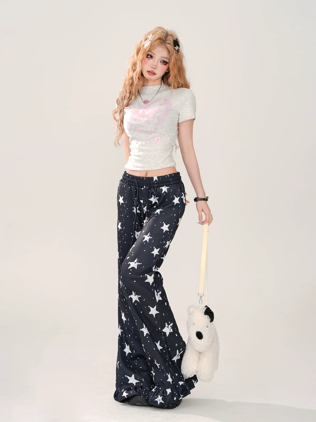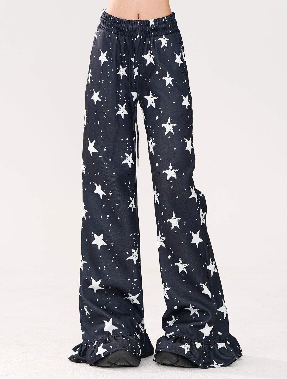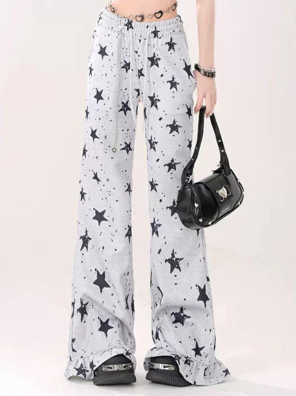 カジュアルフレアスターレイジーパンツで、快適でキュートな装いを演出しましょう!フレアデザインが、カジュアルルックを手軽に格上げ。楽しい星柄で、スタイリッシュに差をつけられます。リラックスタイムやちょっとしたお出かけにぴったりです。
