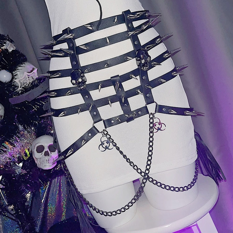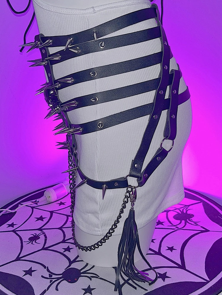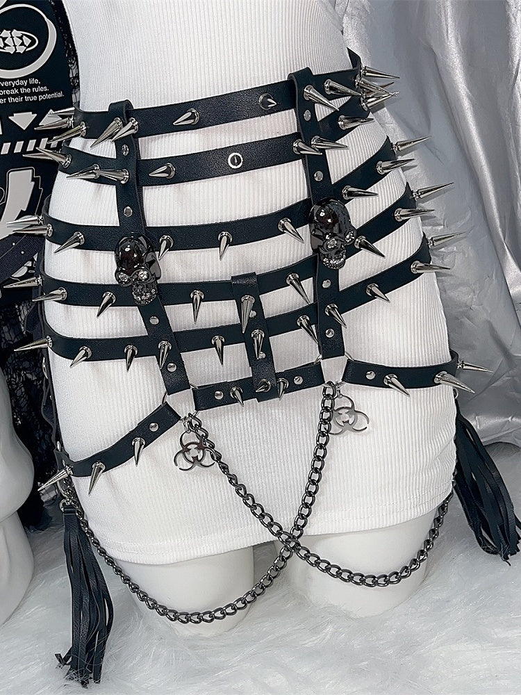 チャームタッセルウエスト&ベルトスタッドブラックスケルトンY2K装飾