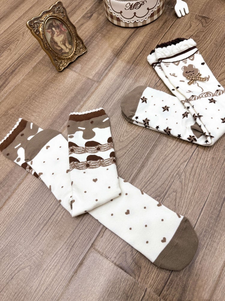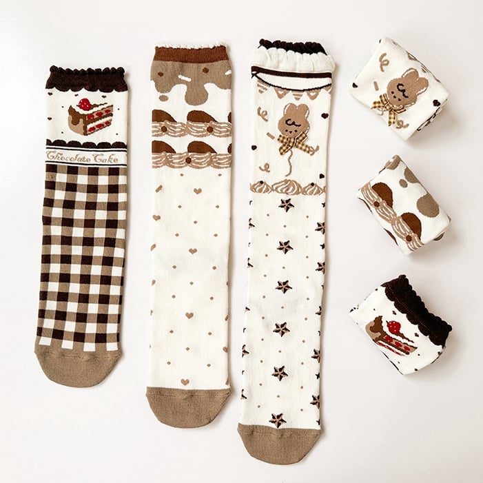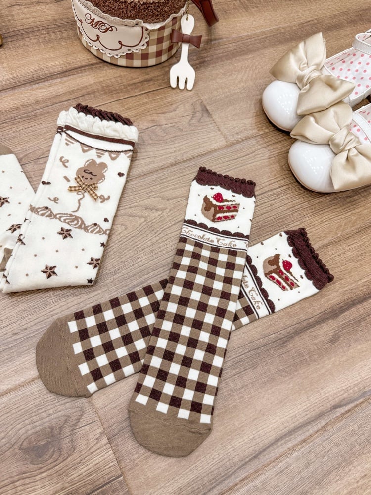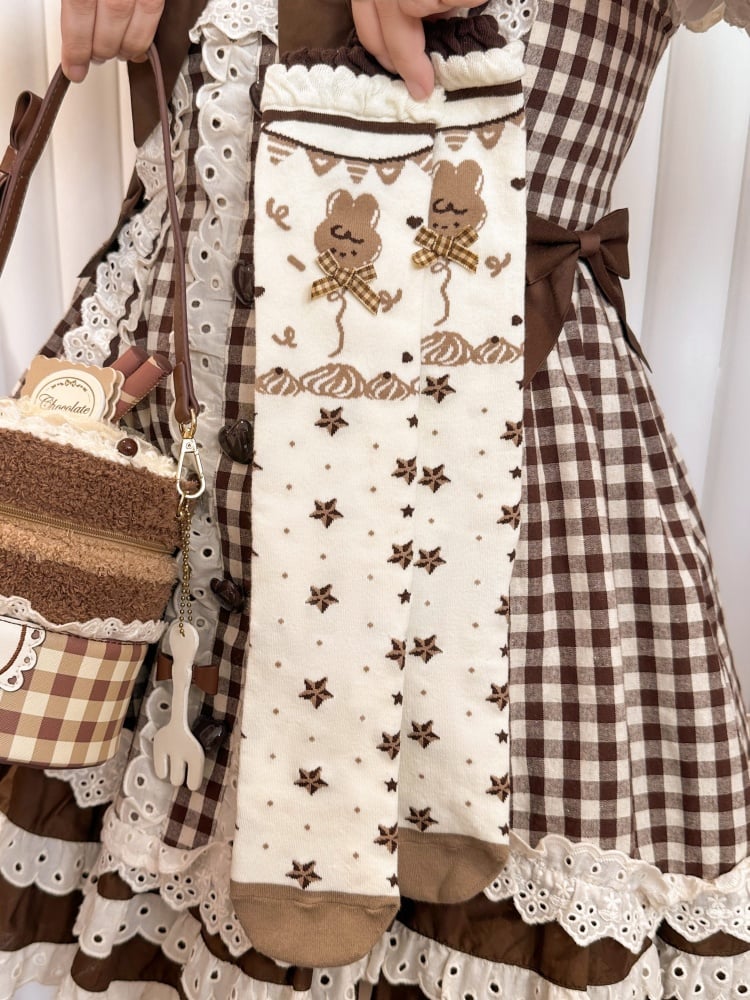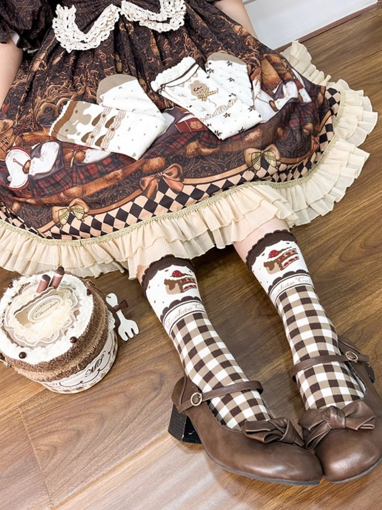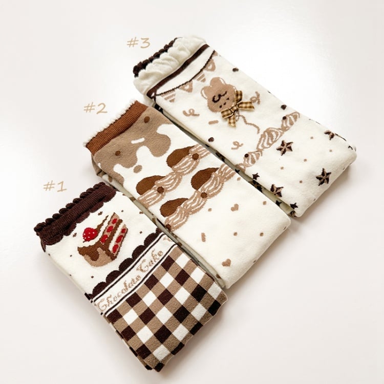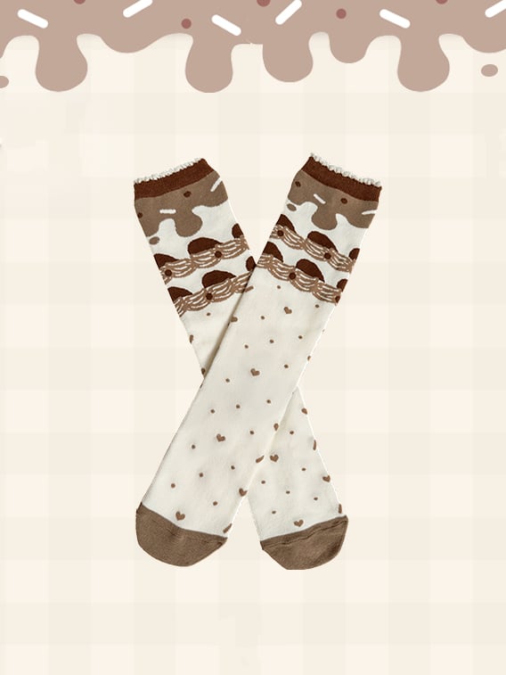 チョコレートテーマのブラウンスイートロリータカーフソックス