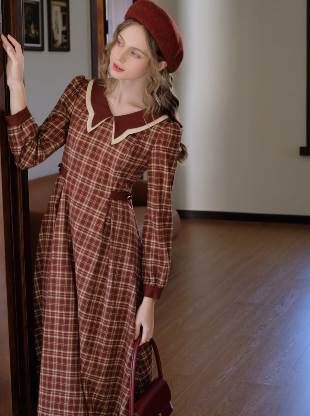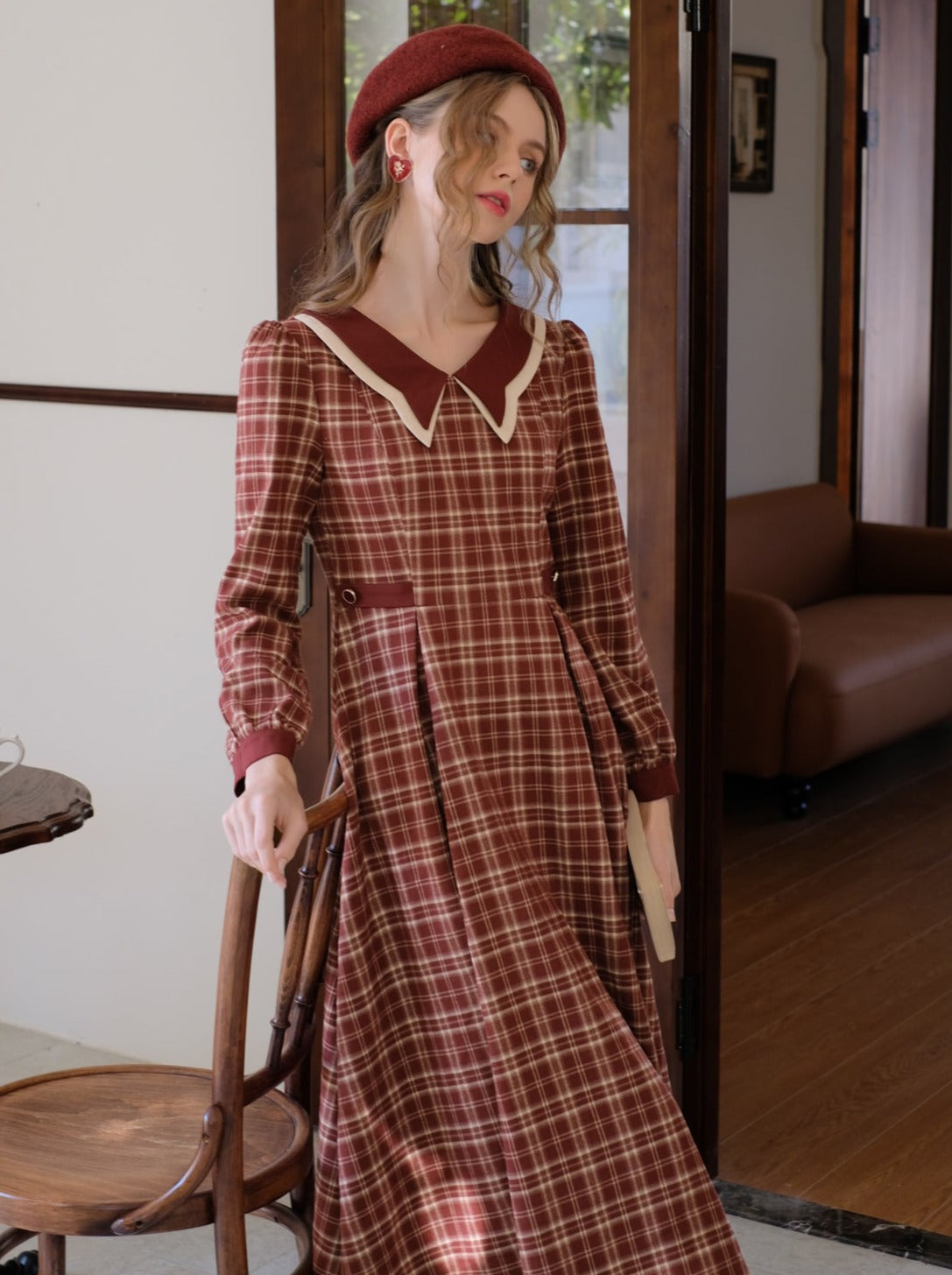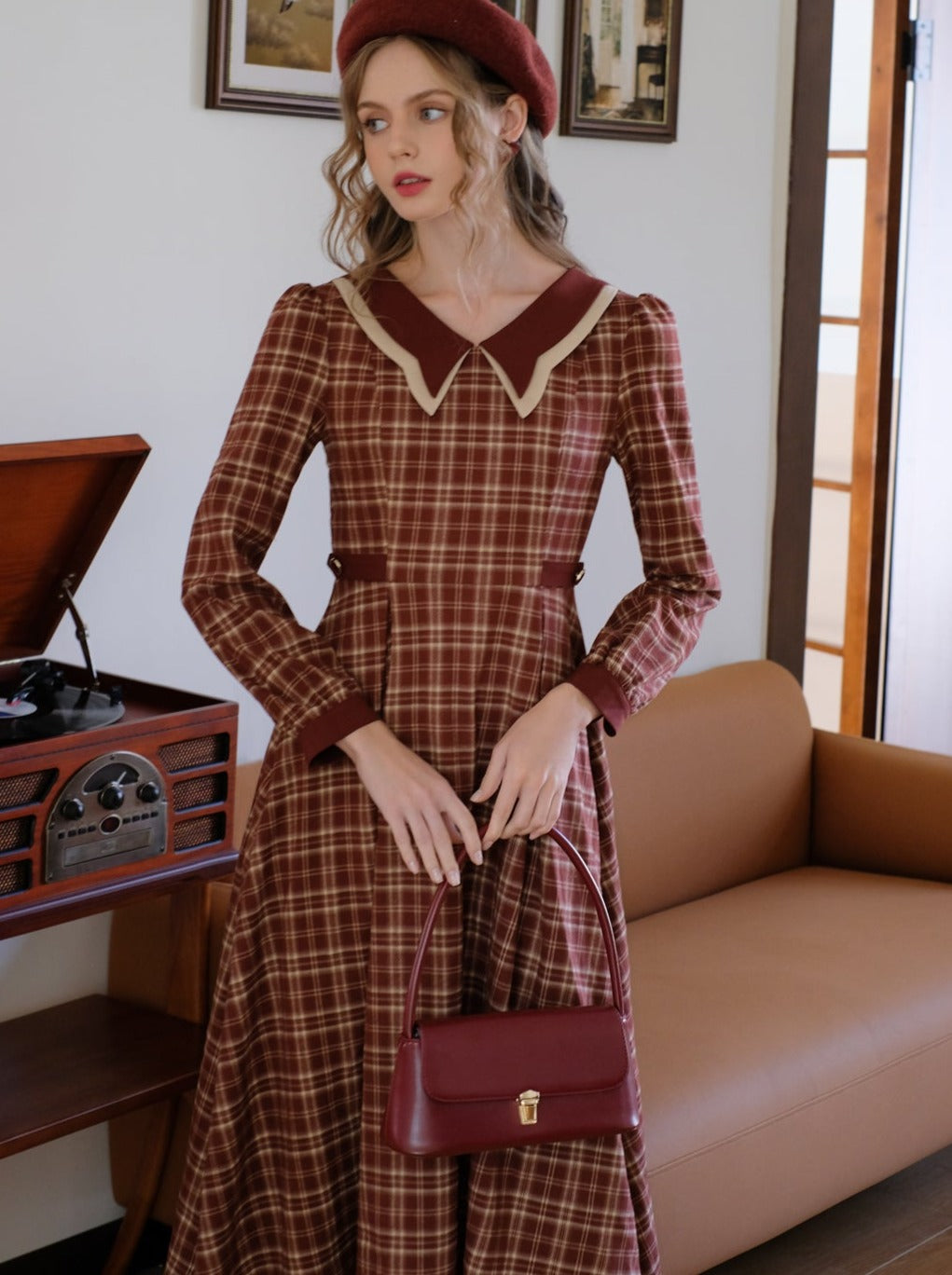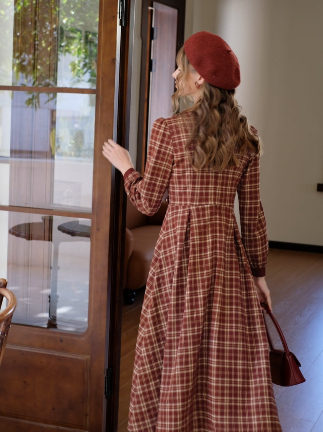レトロなブラックティーのチェック柄が素敵なフレンチカラードレス。蝶のディテールがチャーミング。どんな装いにも可愛らしさをプラスしてくれます。