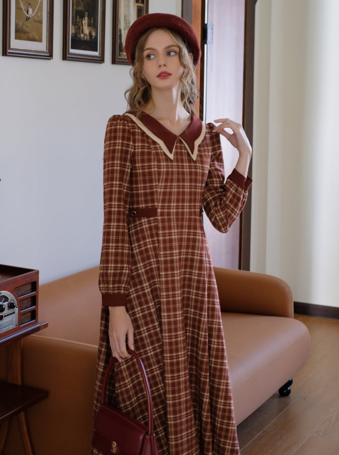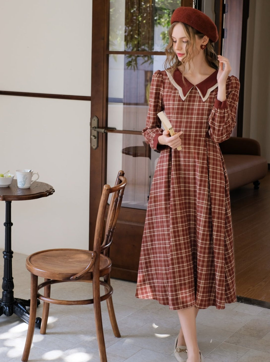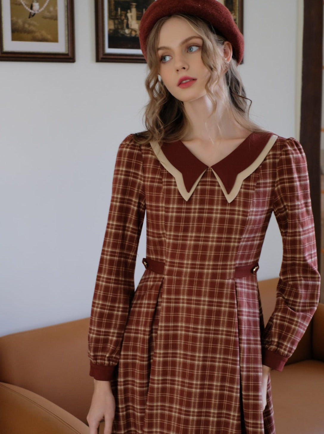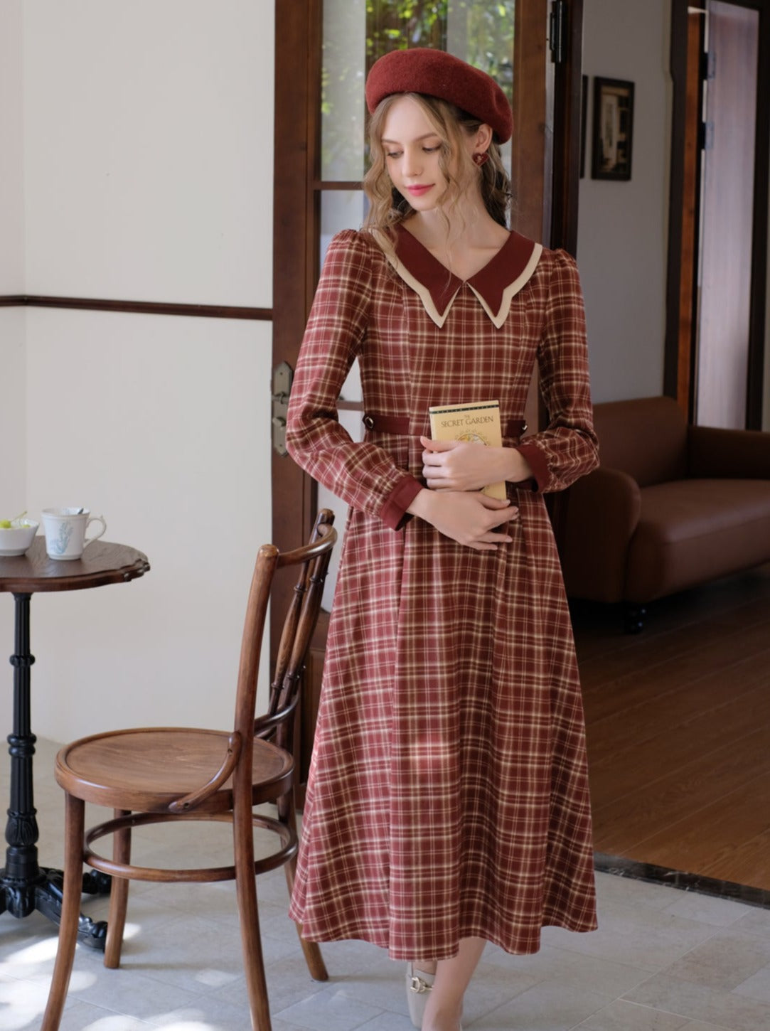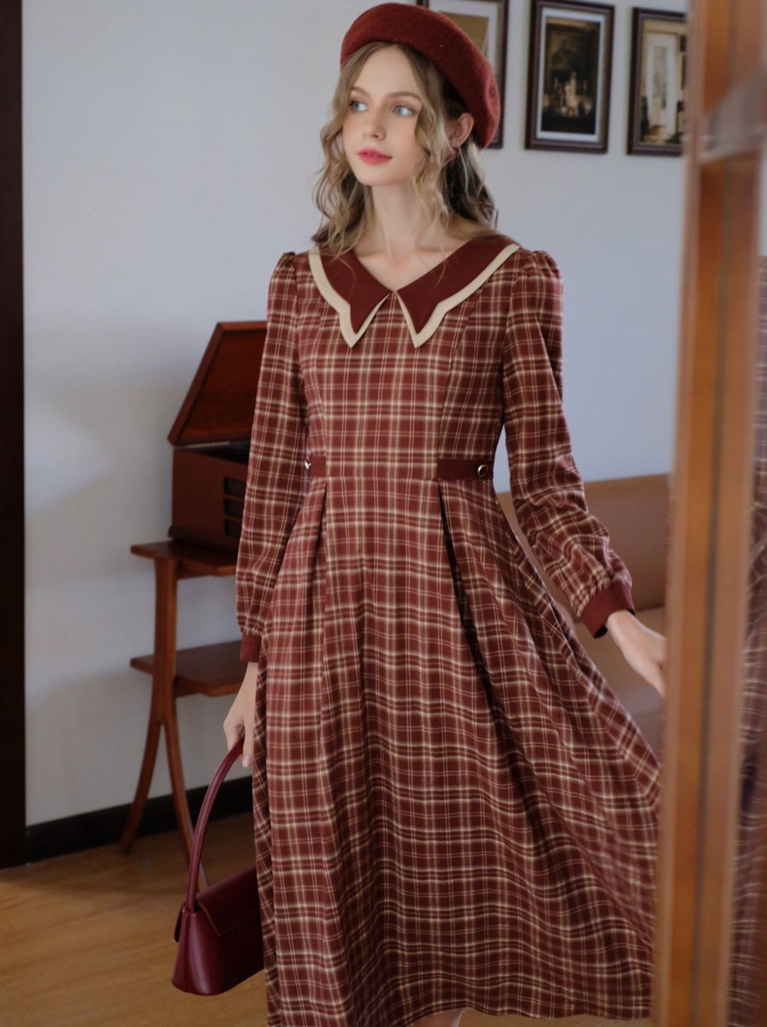 レトロなブラックティーのチェック柄が素敵なフレンチカラードレス。蝶のディテールがチャーミング。どんな装いにも可愛らしさをプラスしてくれます。
