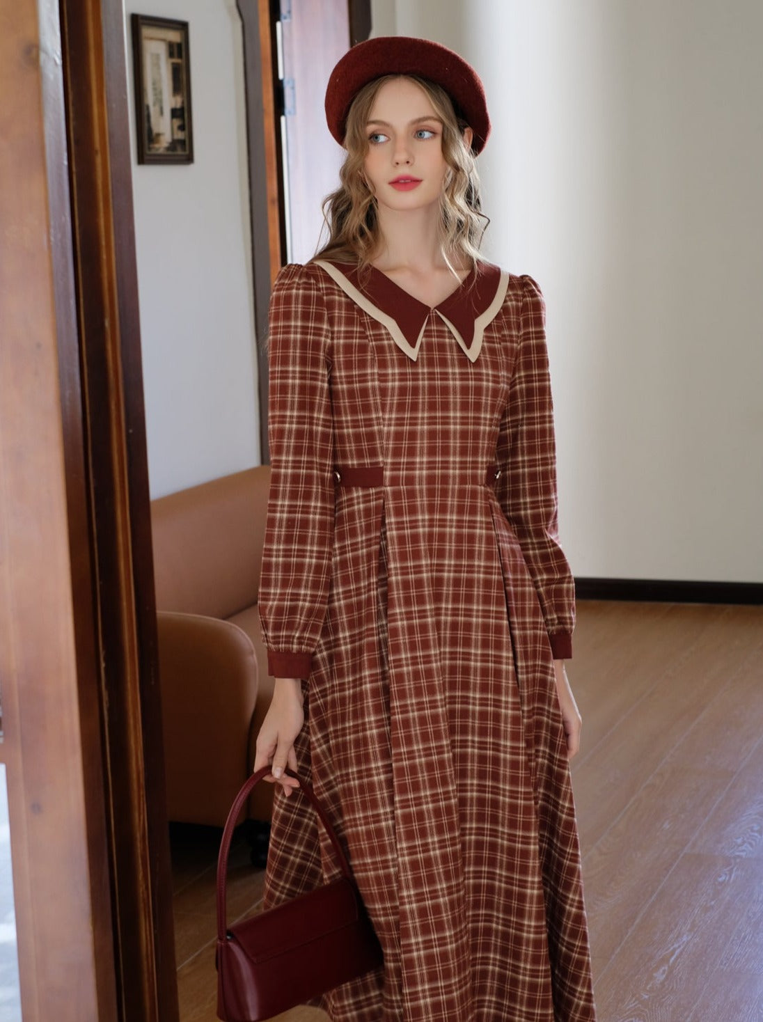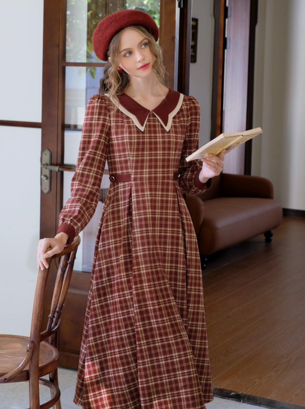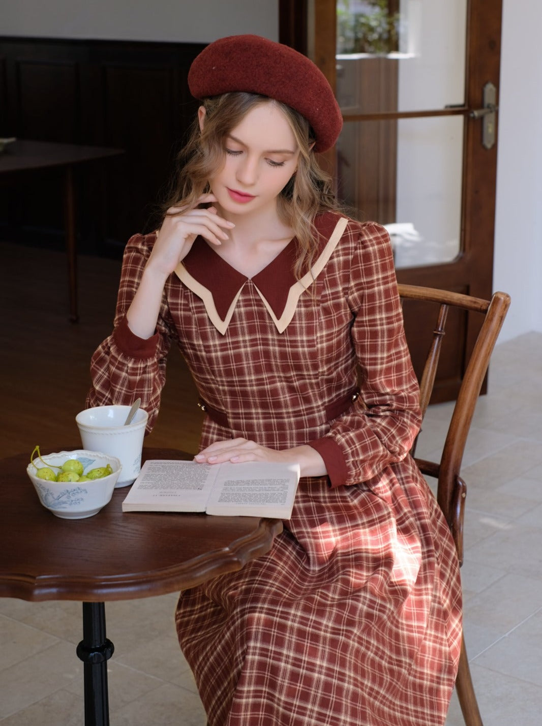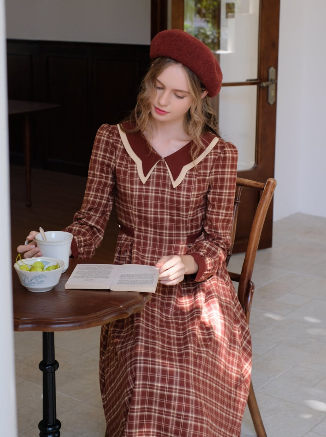 レトロなブラックティーのチェック柄が素敵なフレンチカラードレス。蝶のディテールがチャーミング。どんな装いにも可愛らしさをプラスしてくれます。