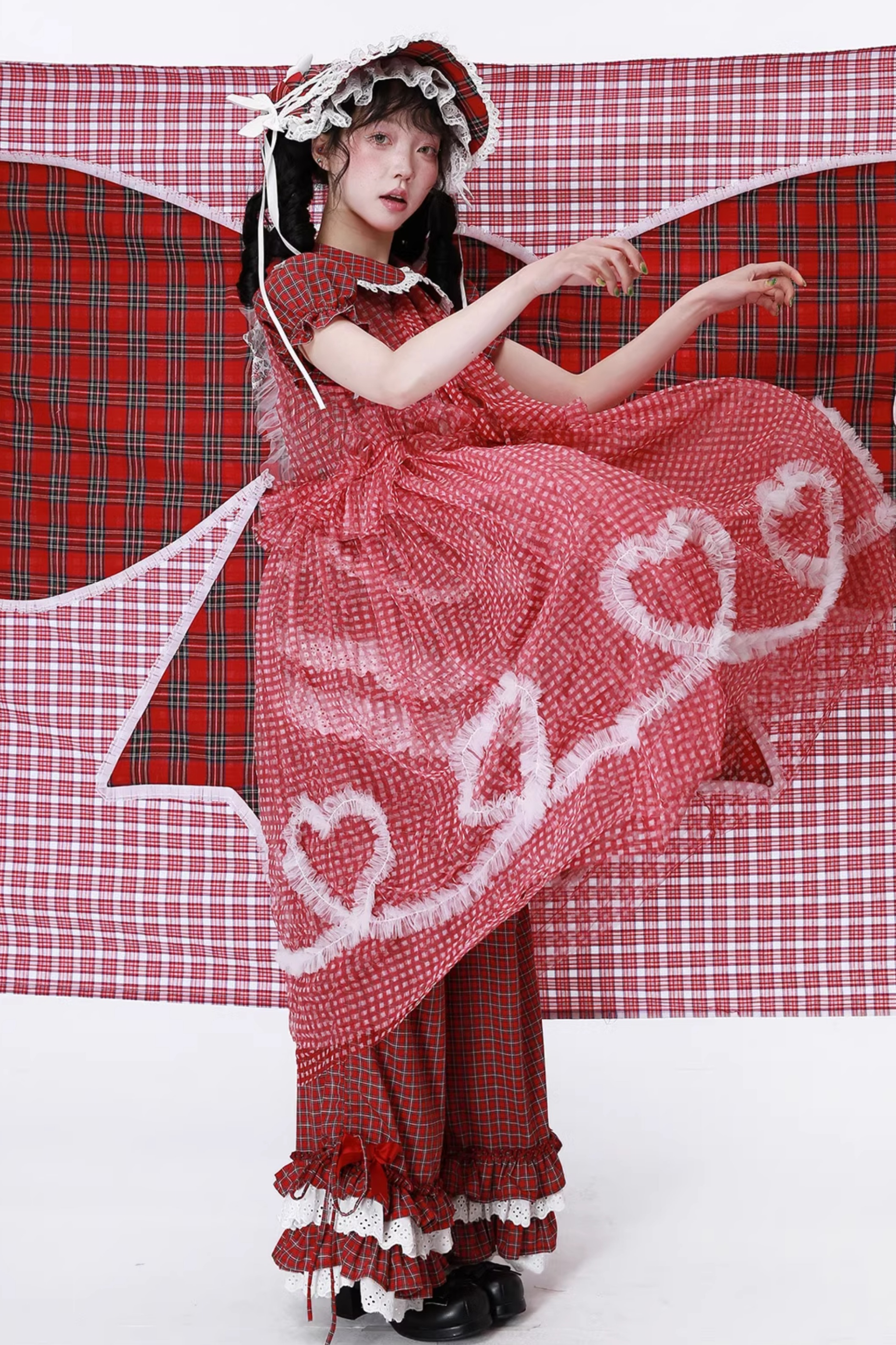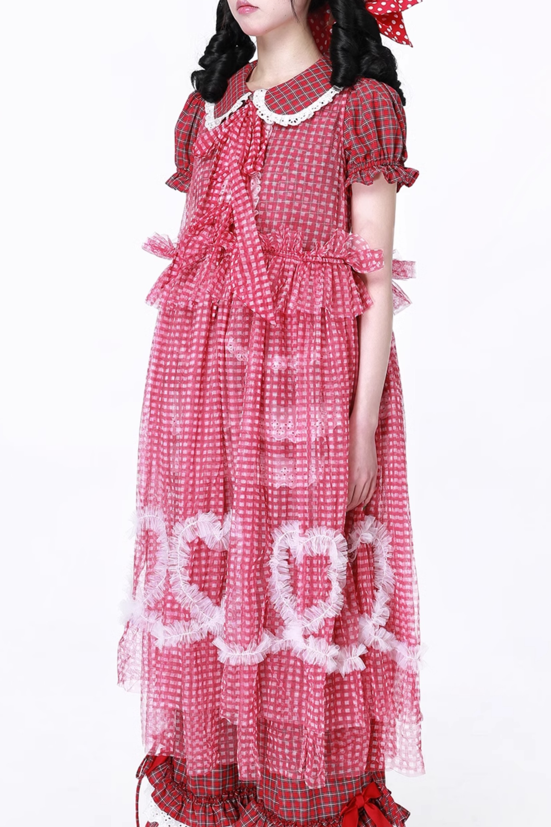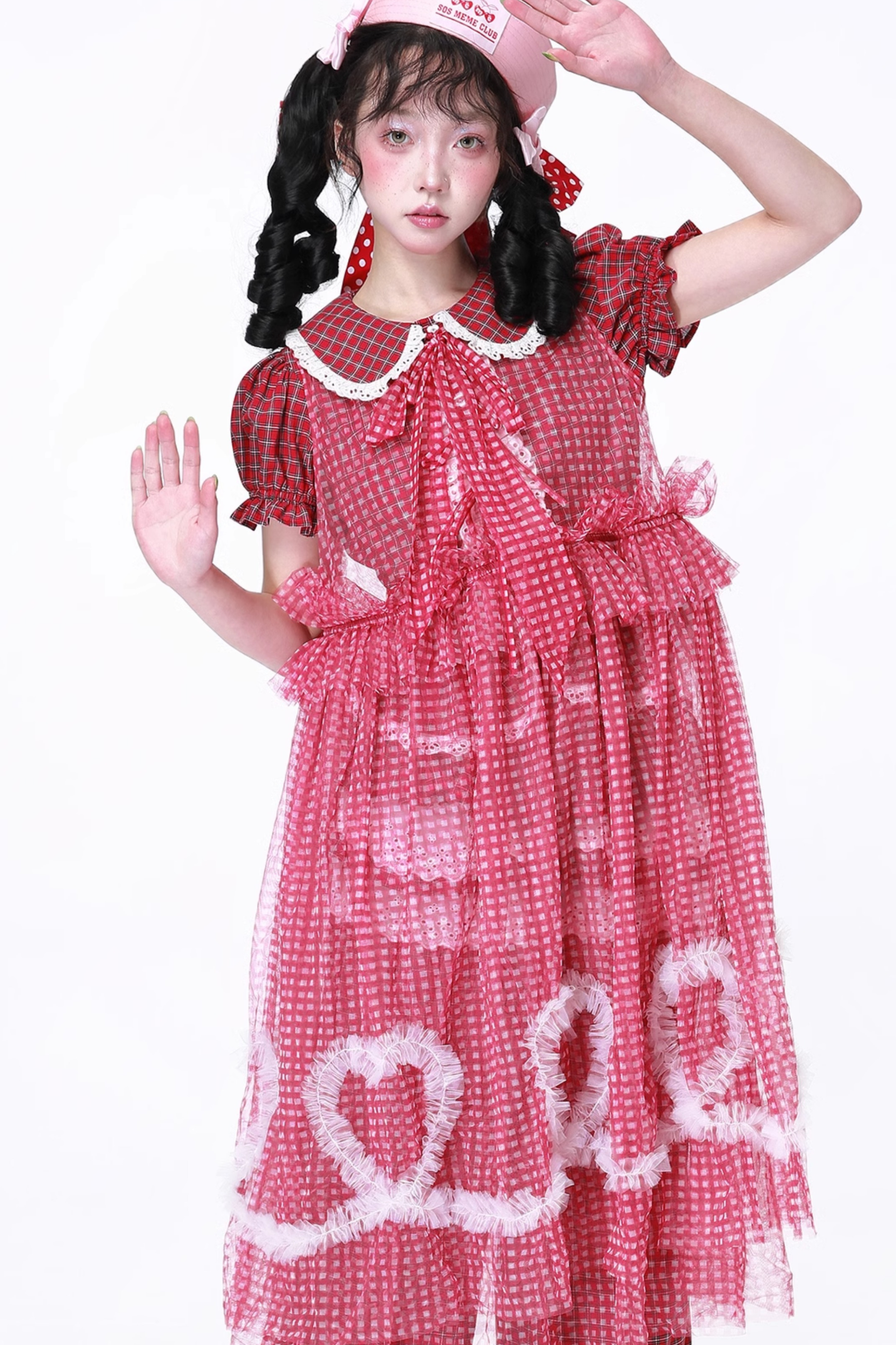 ピンクと白のオールドスクールロリータファッションドレス、蝶結びディテール、ロリータJSKセット