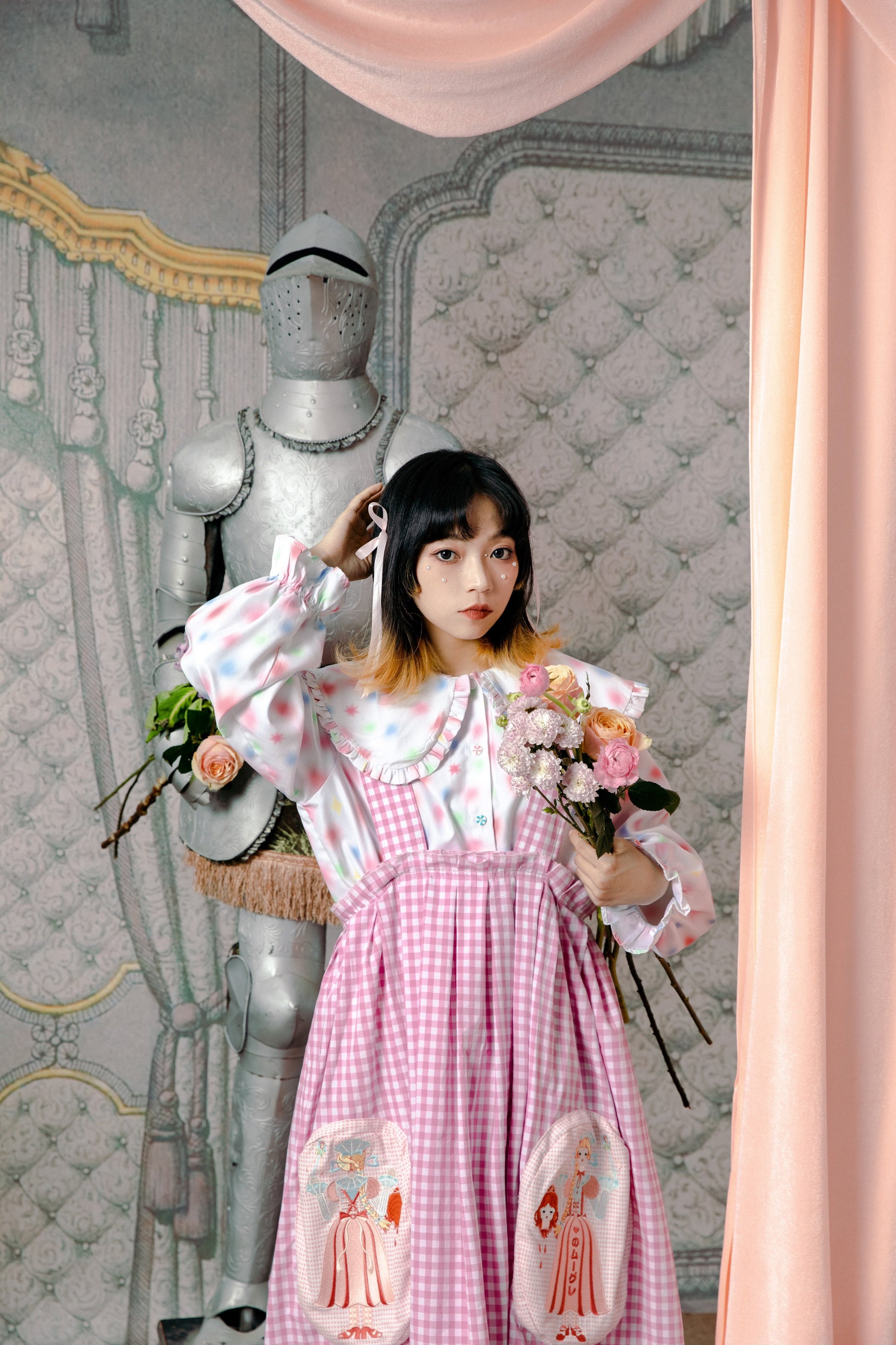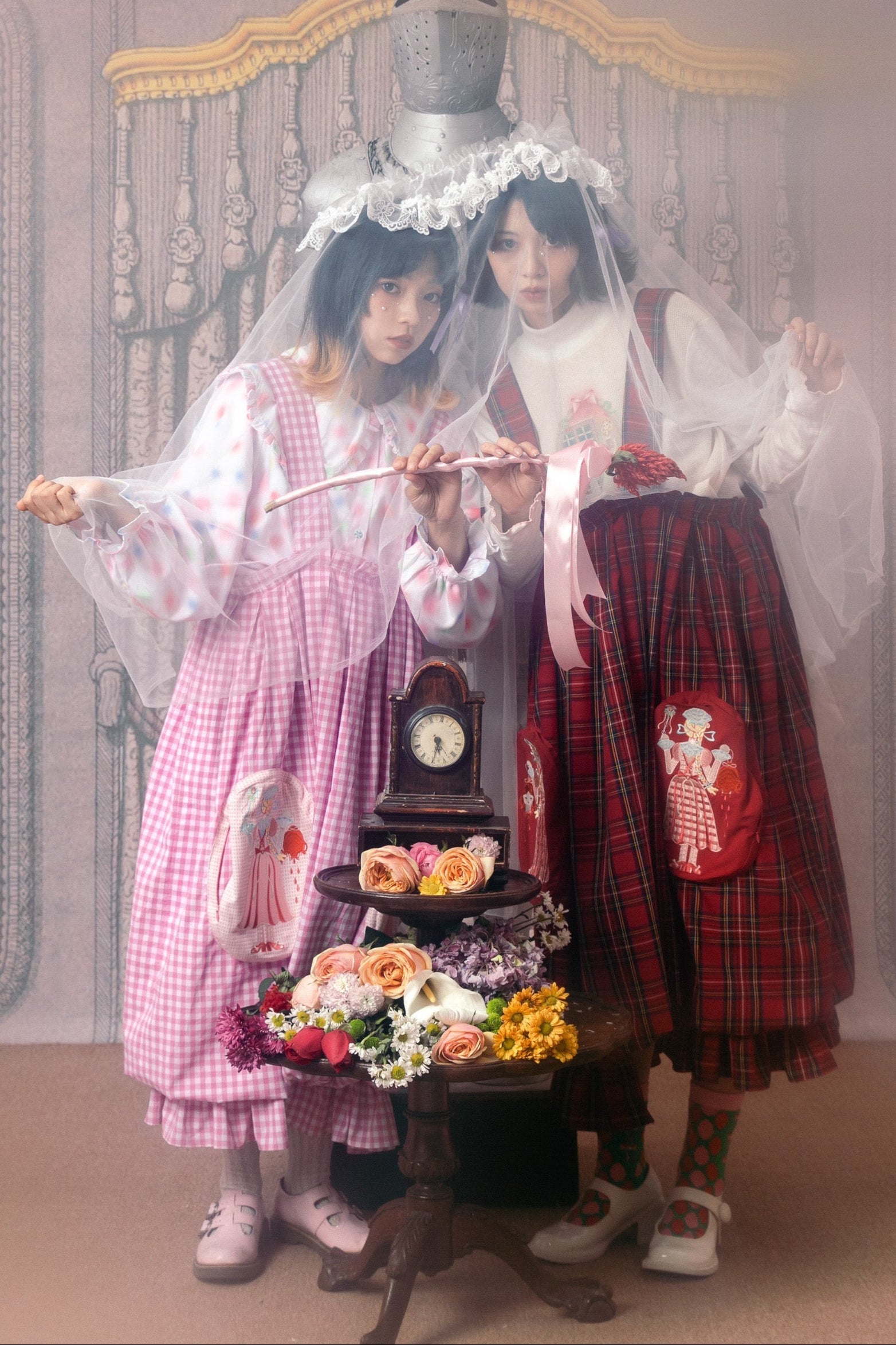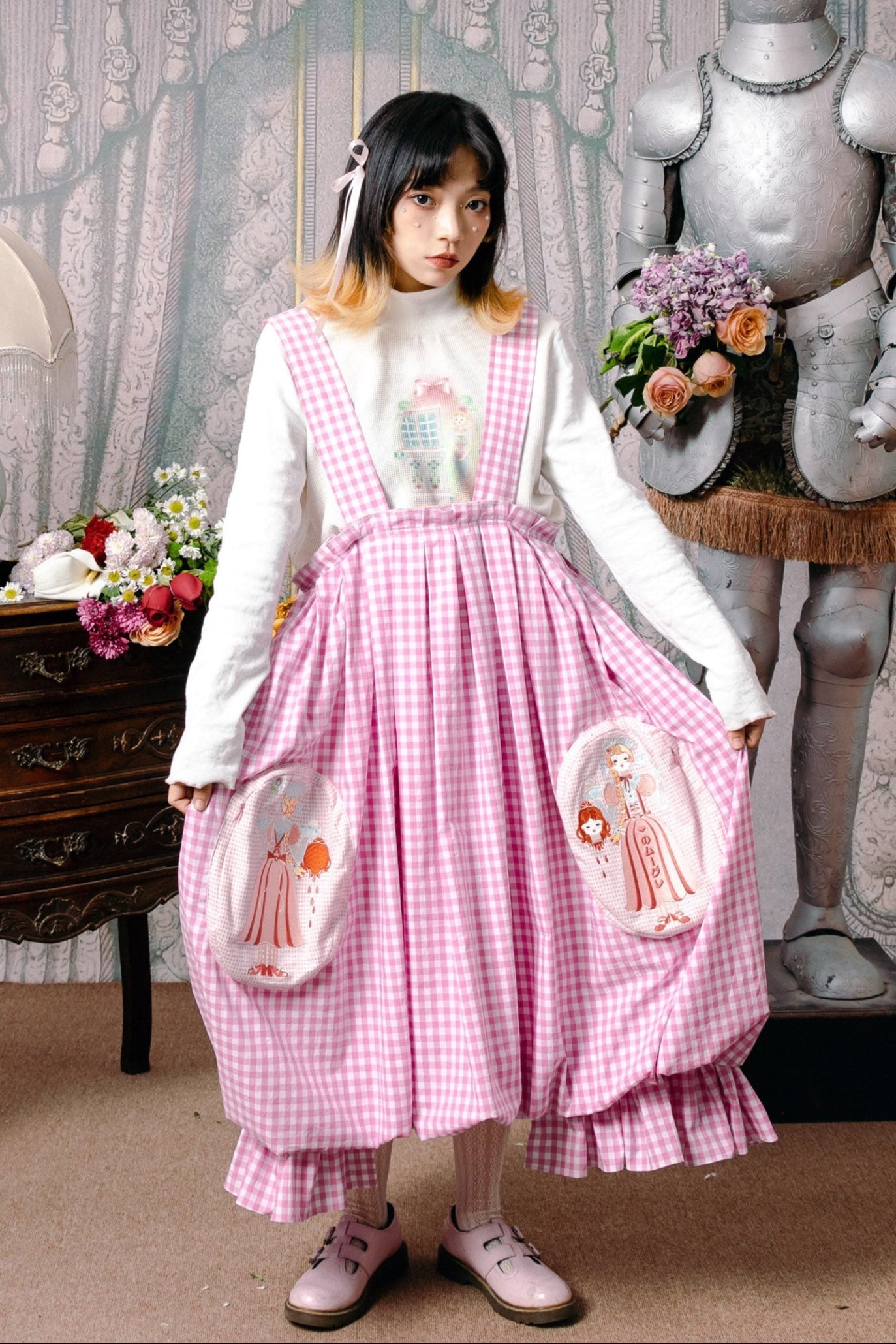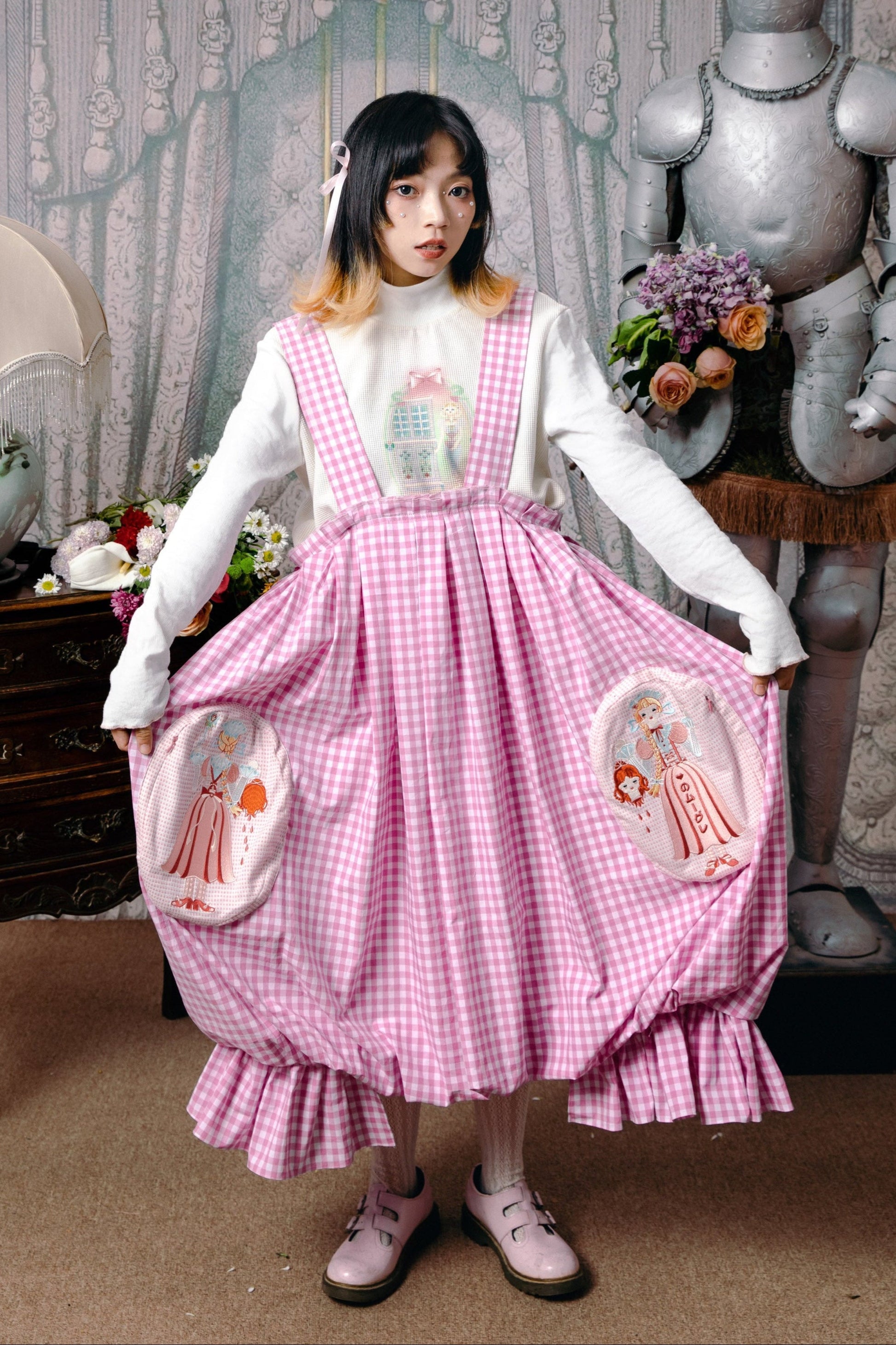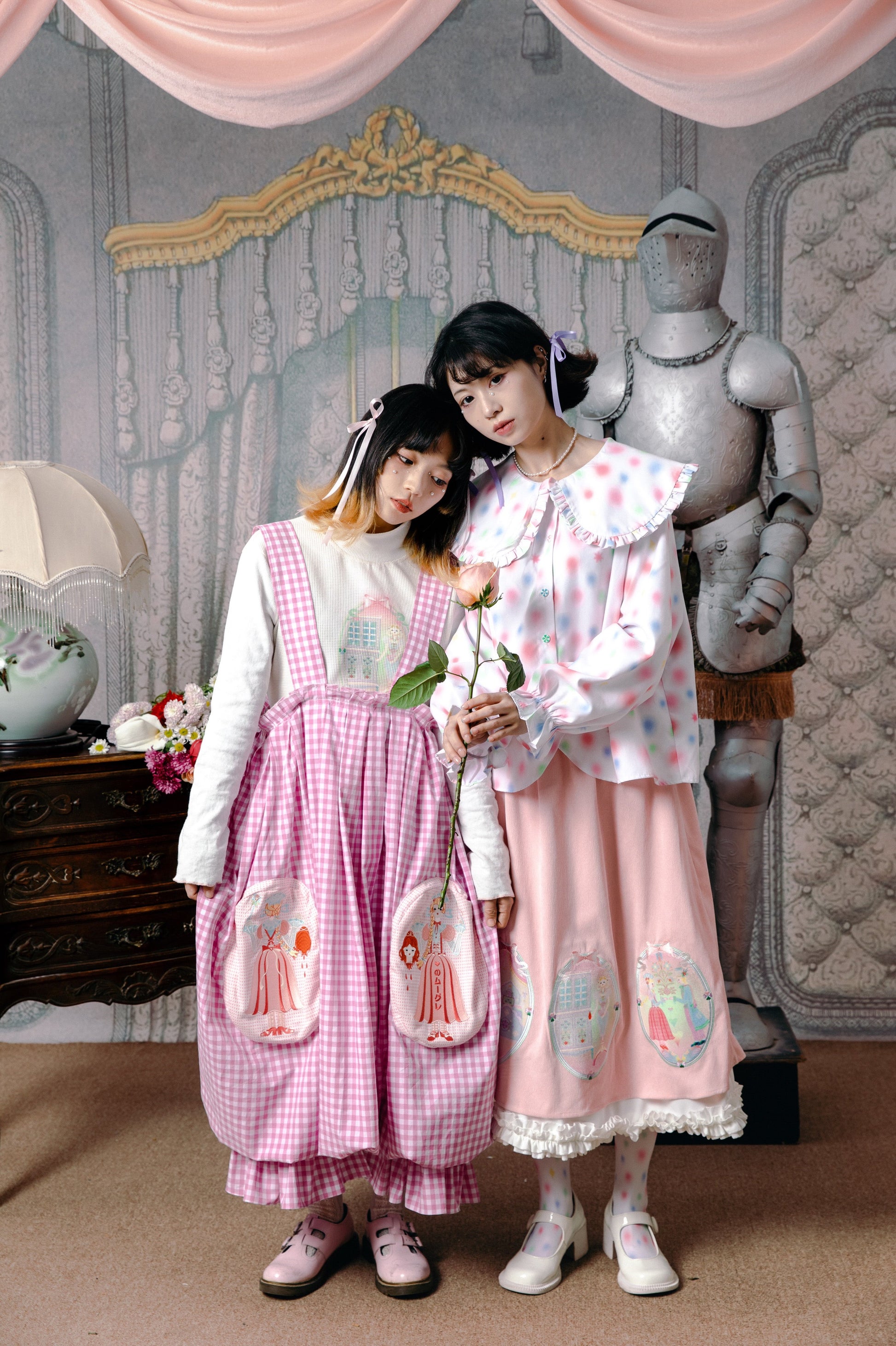 ピンクと白のオールドスクールロリータファッションドレス、蝶結びディテール、ロリータJSKセット