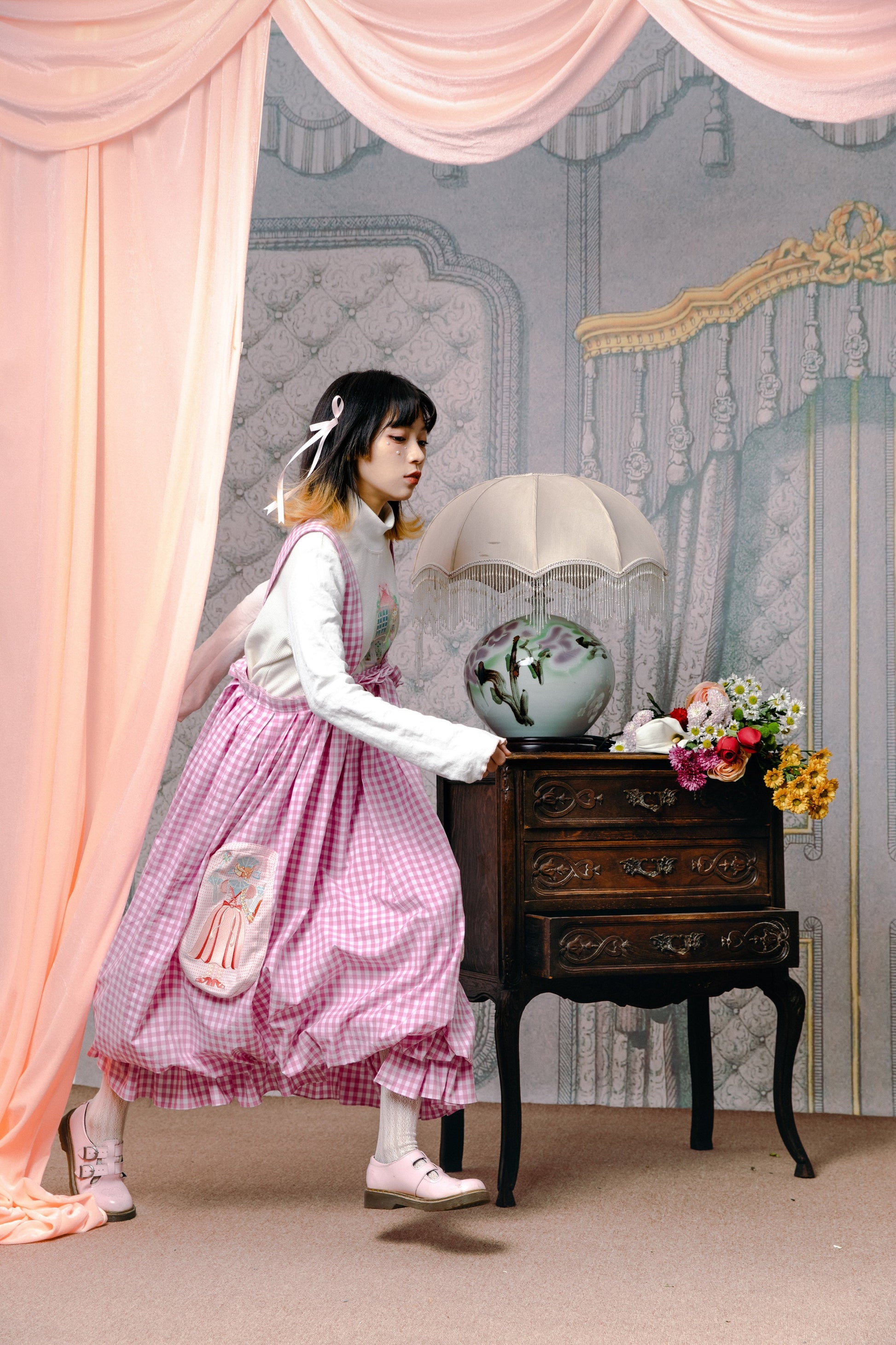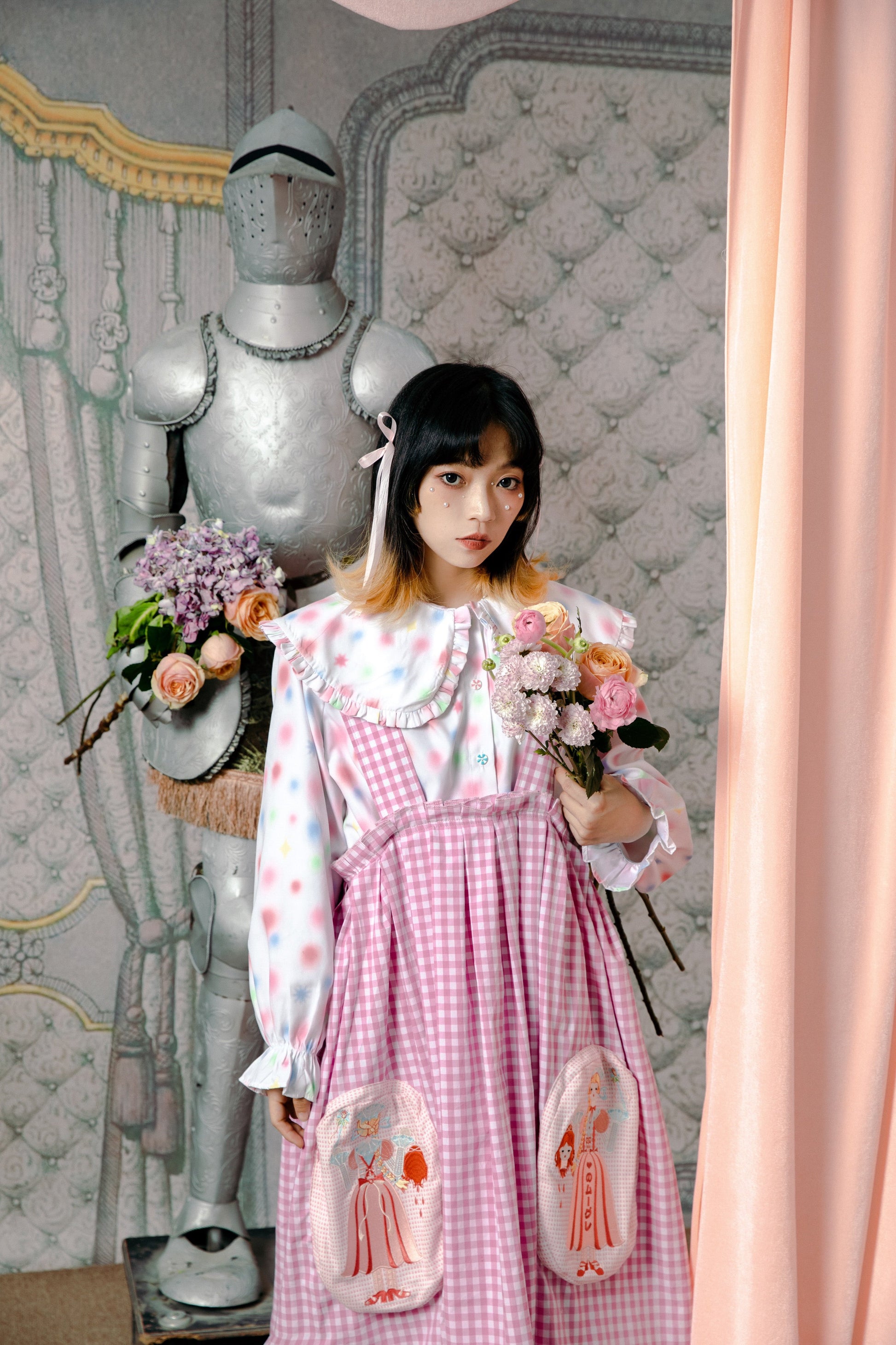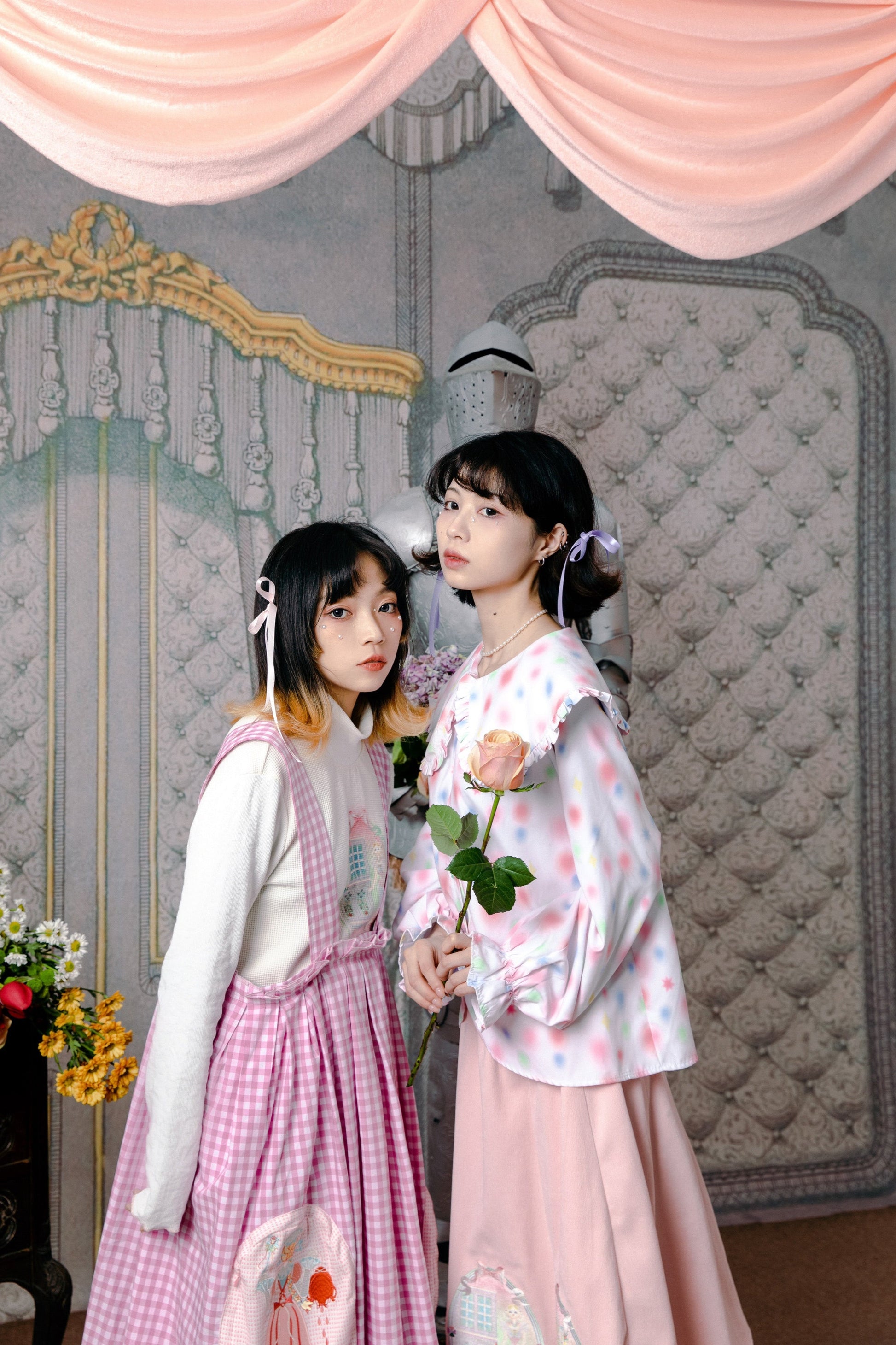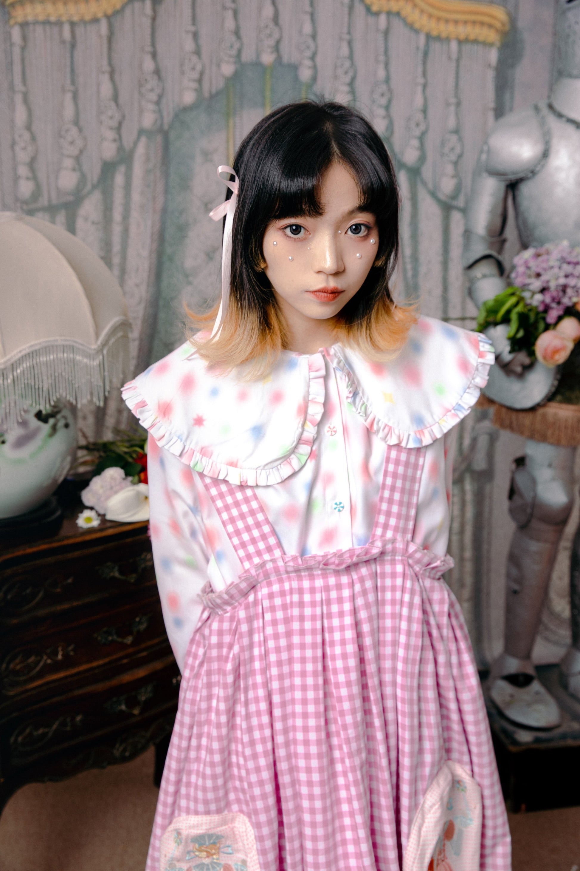 ピンクと白のオールドスクールロリータファッションドレス、蝶結びディテール、ロリータJSKセット