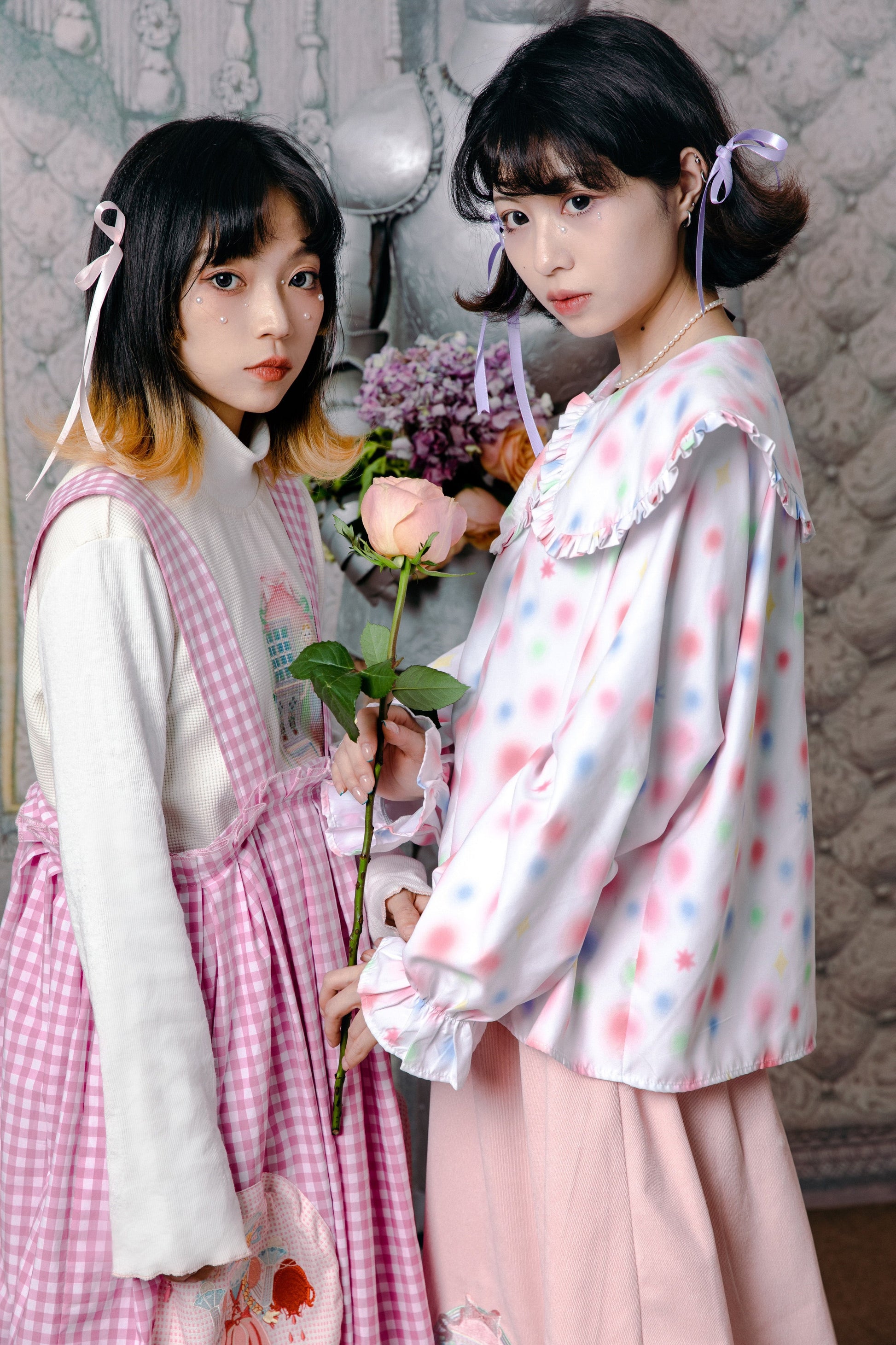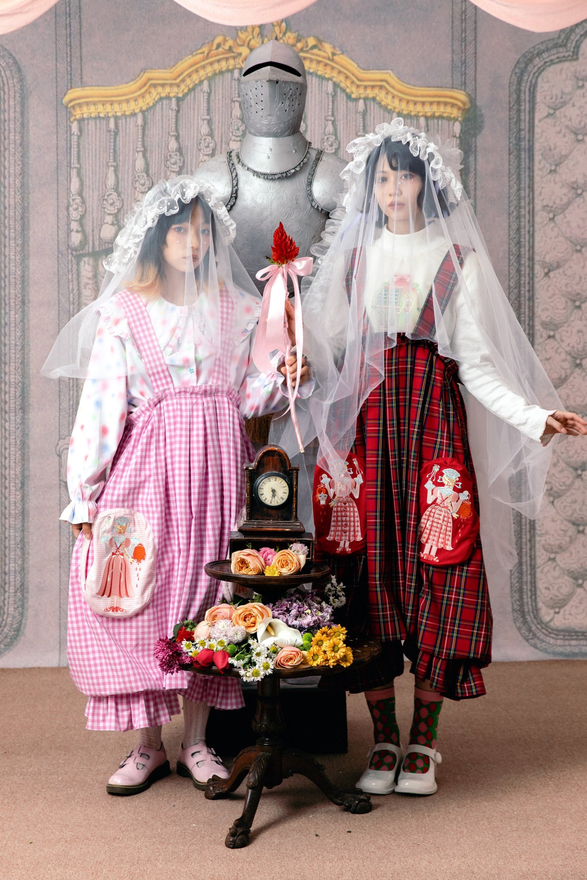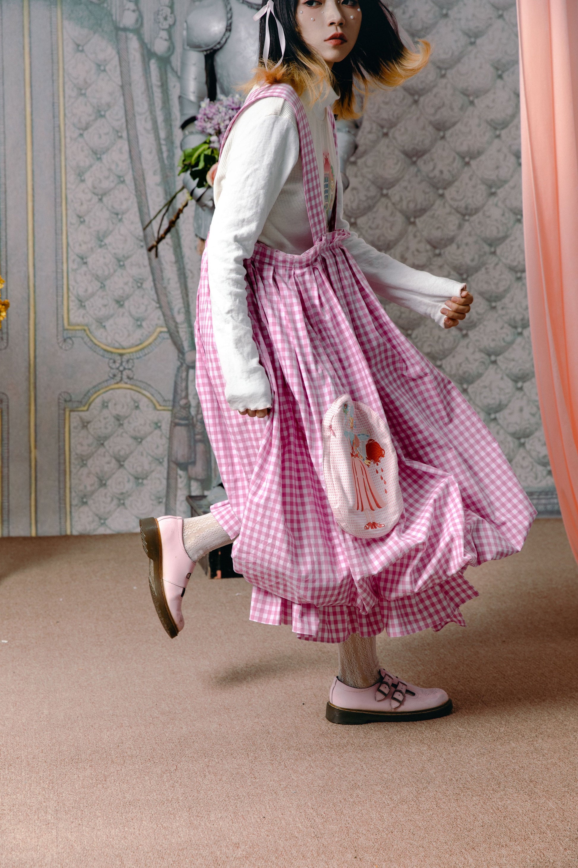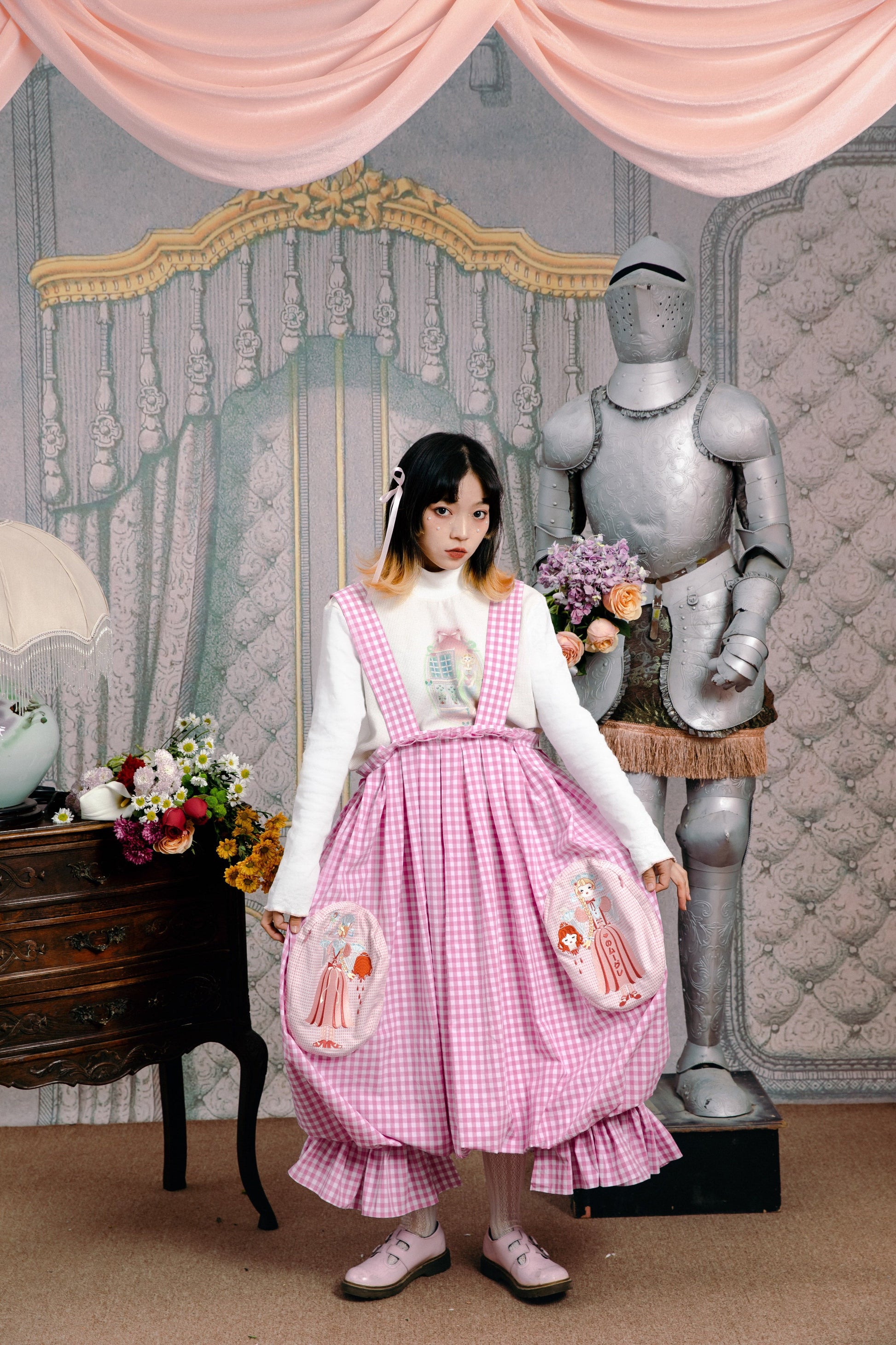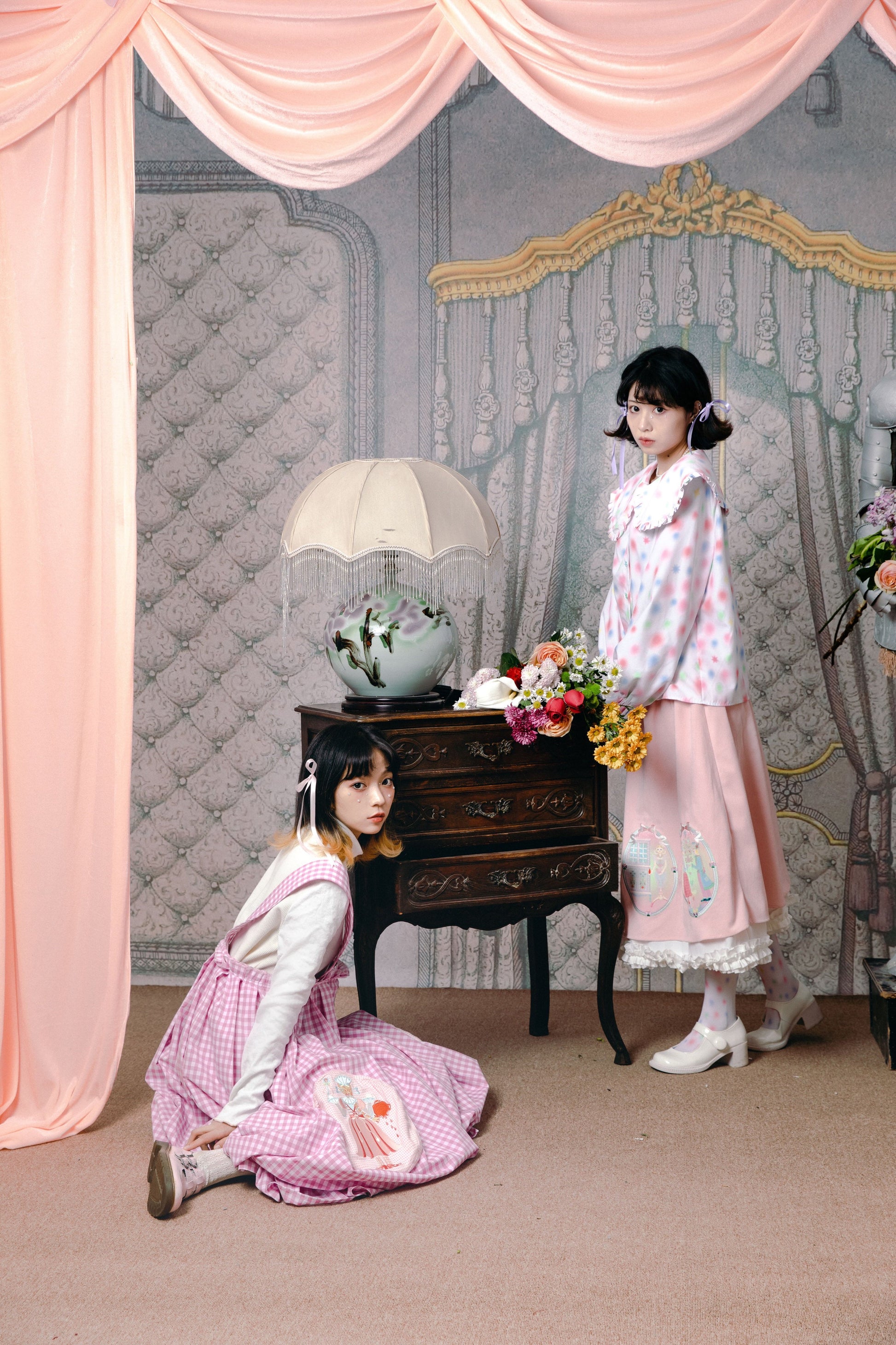 ピンクと白のオールドスクールロリータファッションドレス、蝶結びディテール、ロリータJSKセット