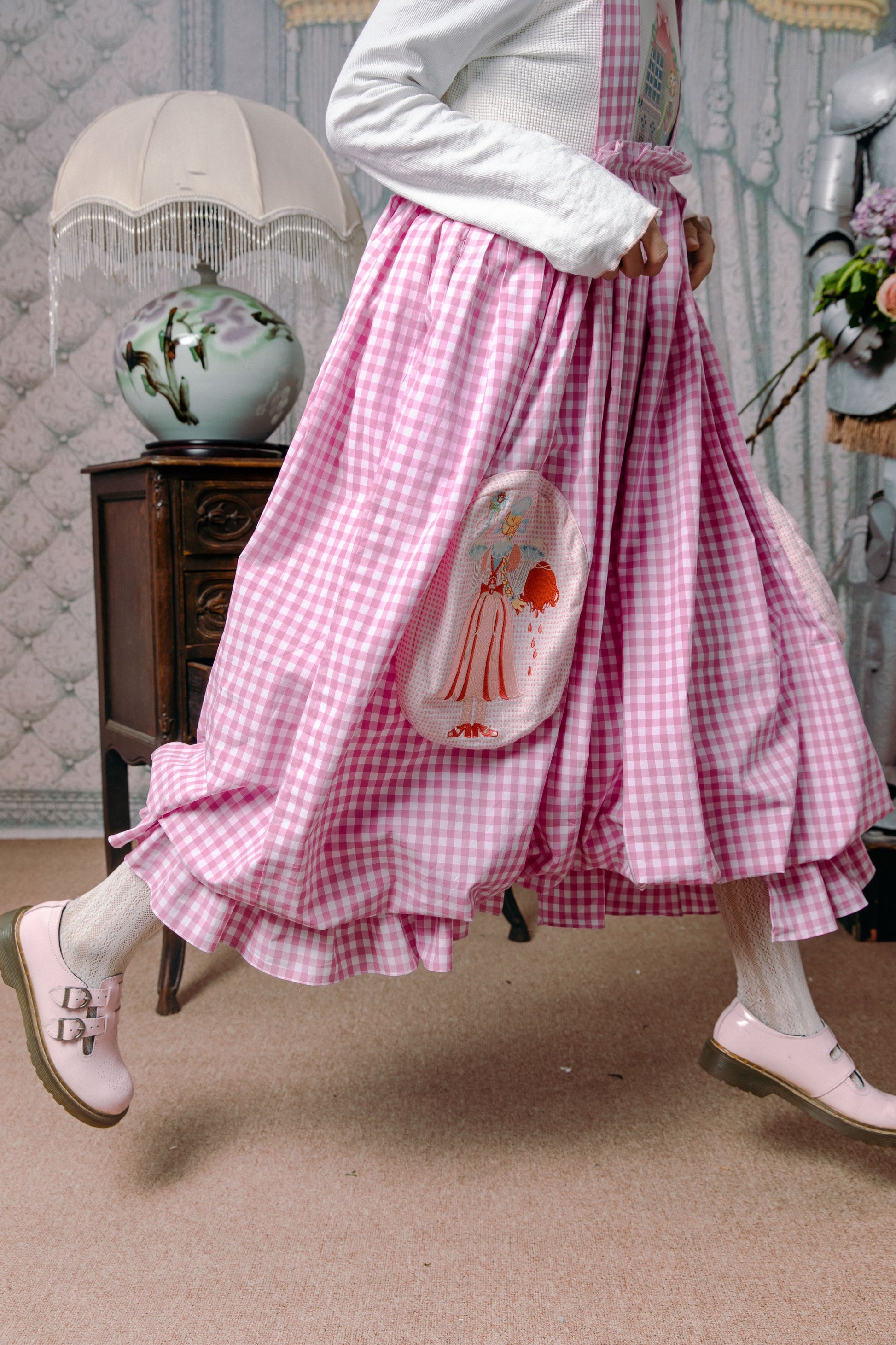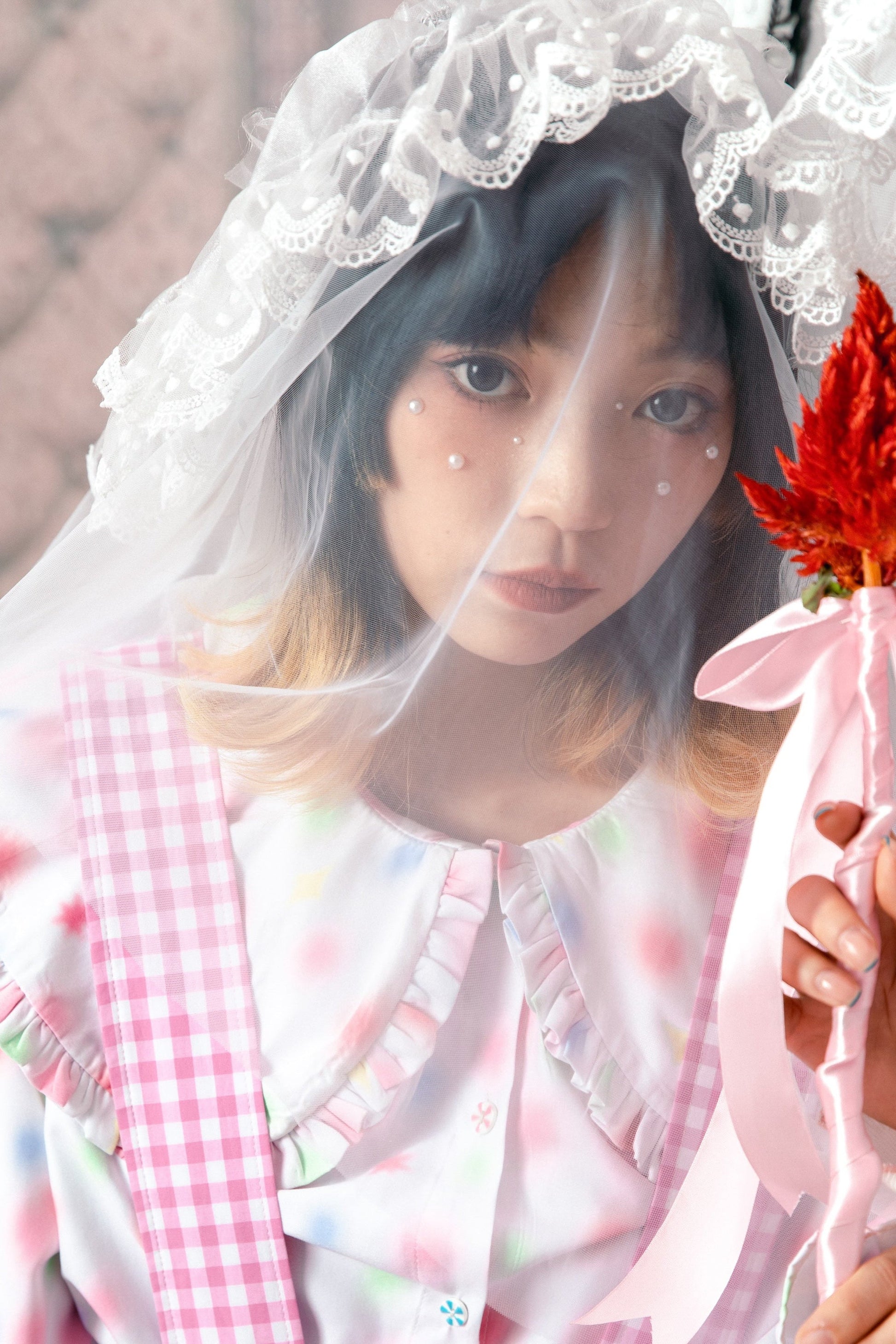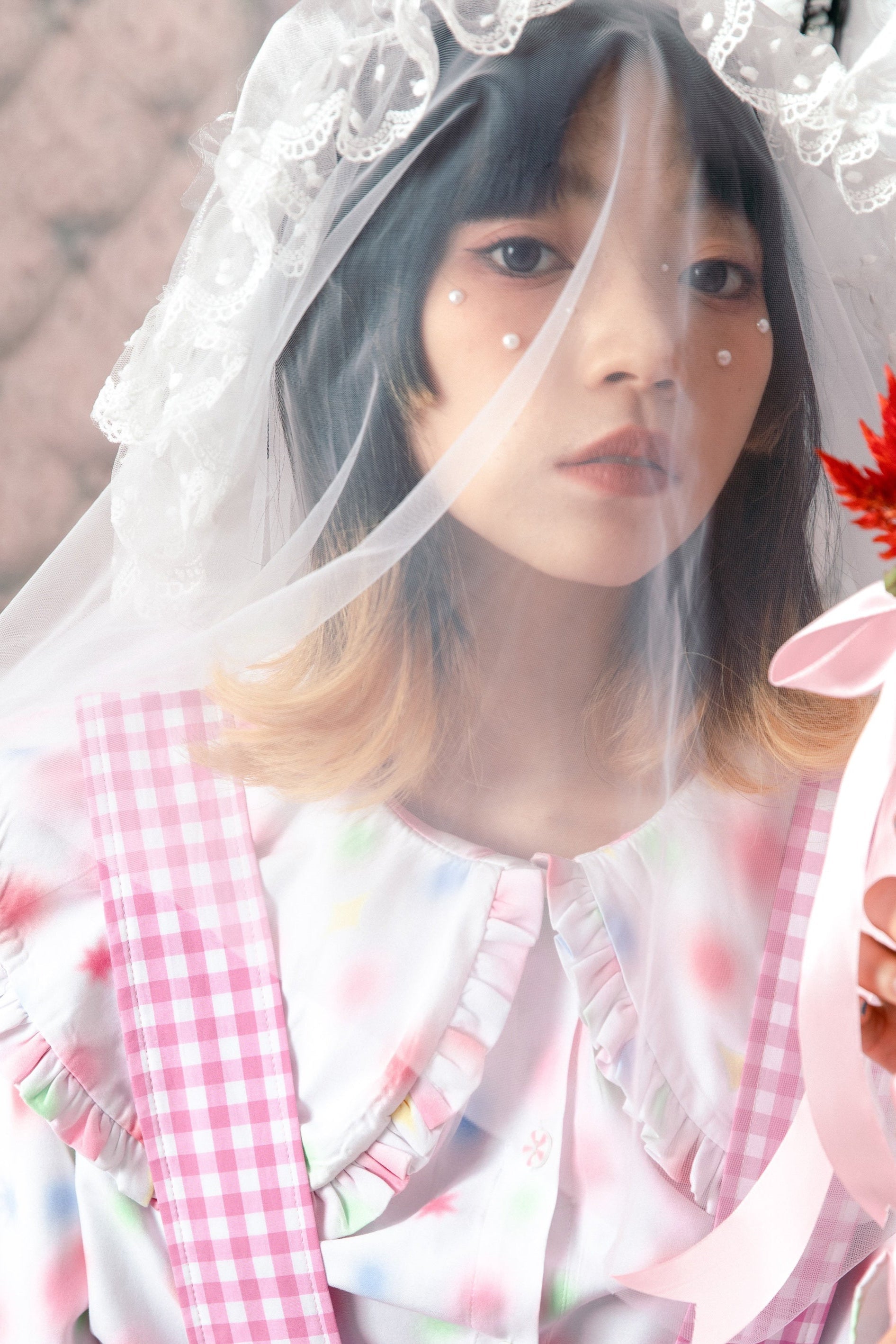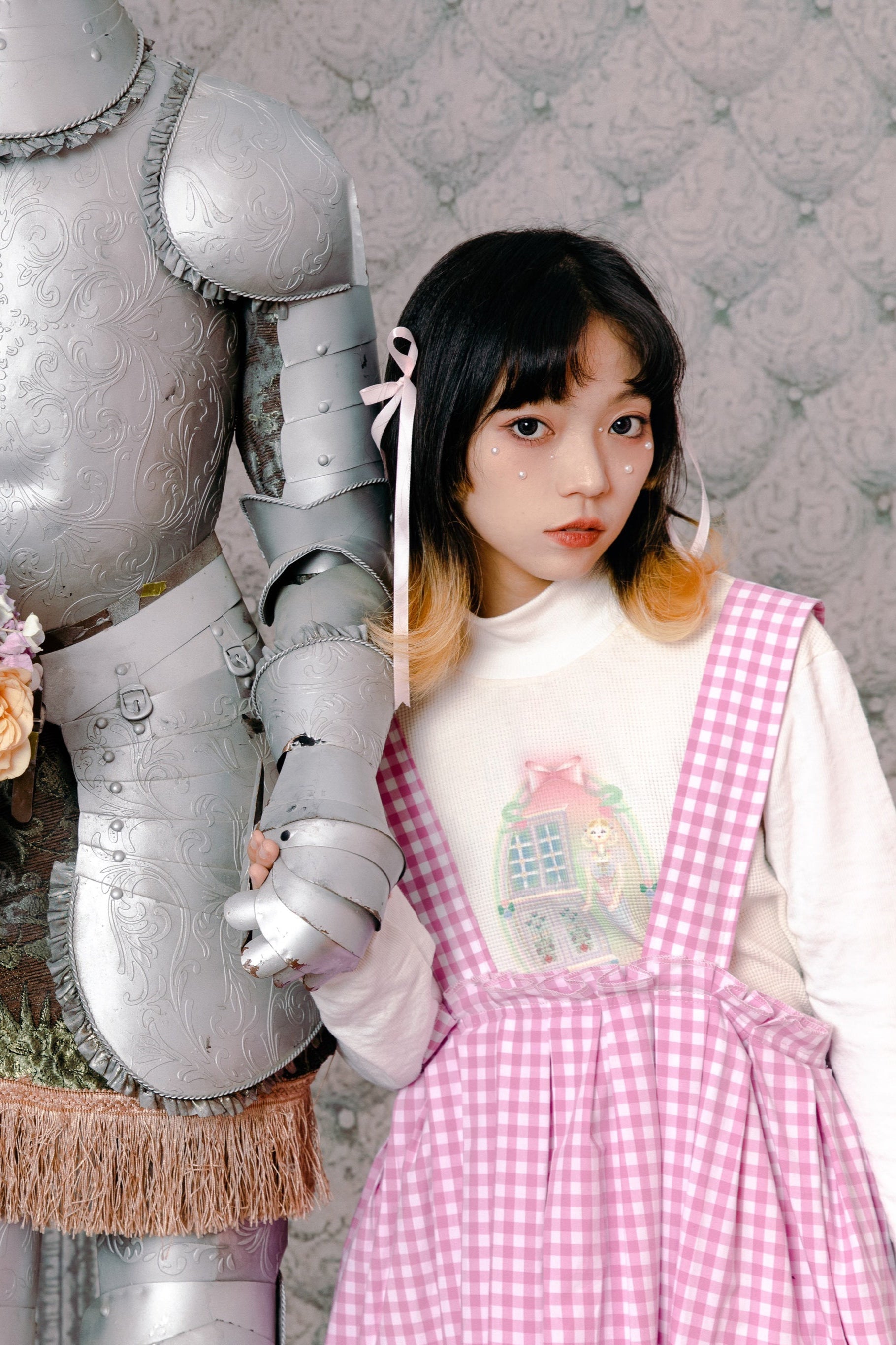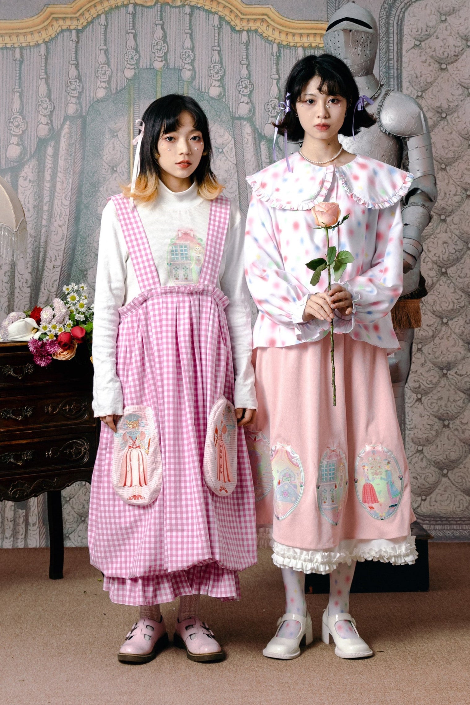 ピンクと白のオールドスクールロリータファッションドレス、蝶結びディテール、ロリータJSKセット