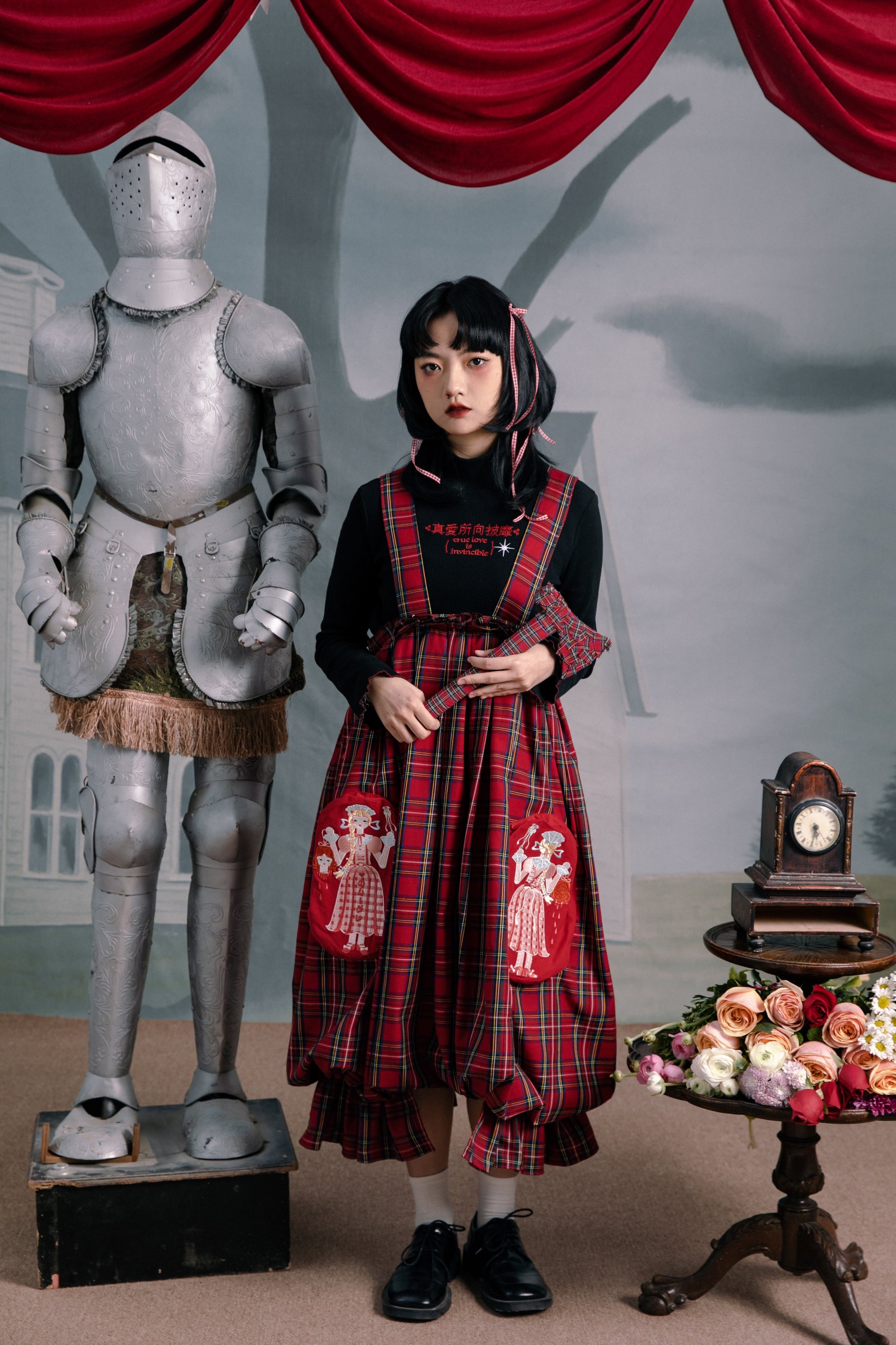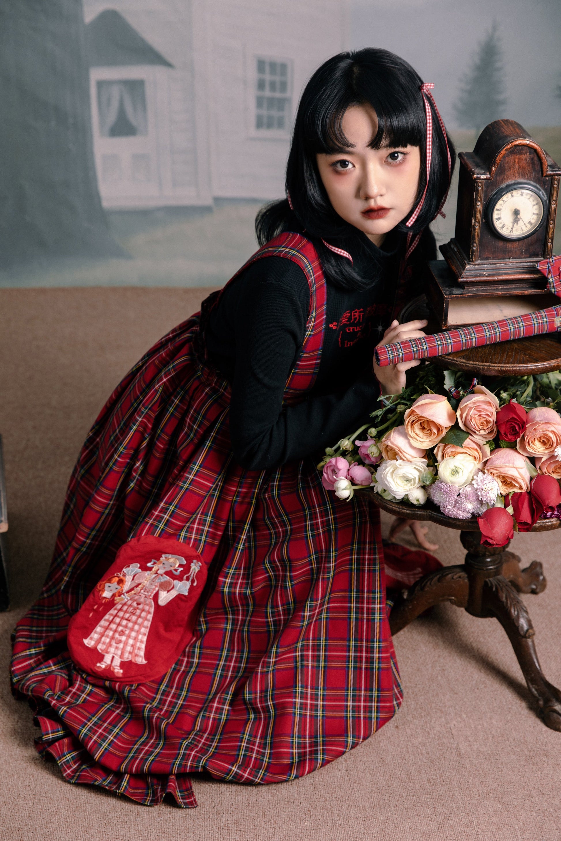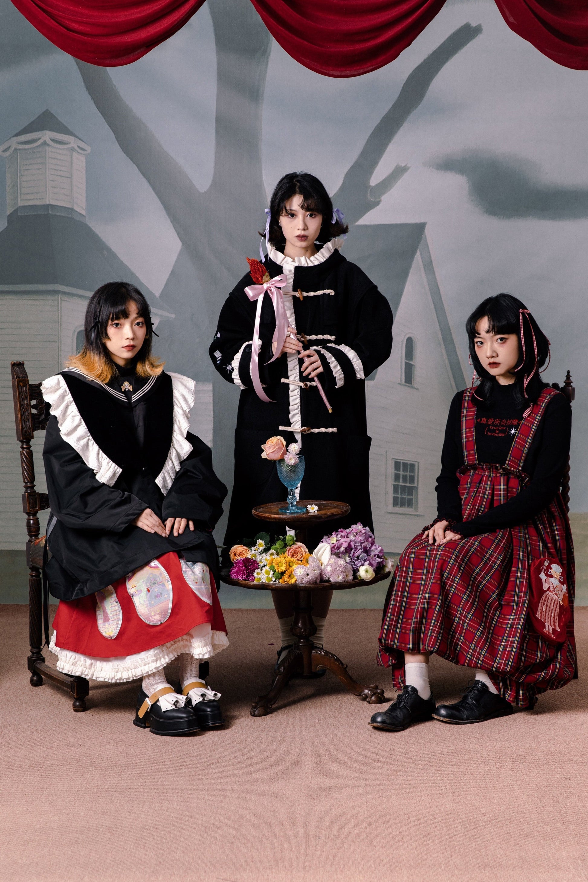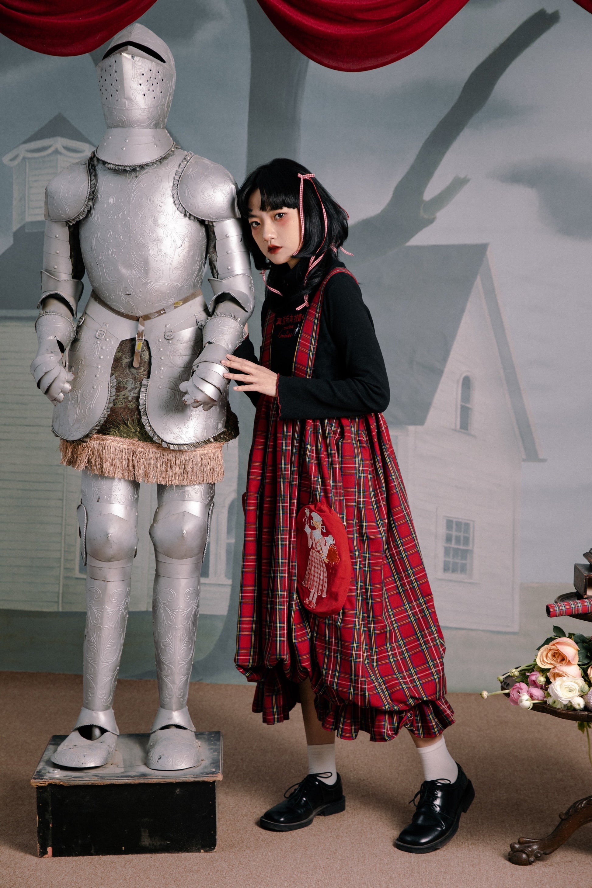 黒と白のオールドスクールロリータファッションドレス蝶結びロリータJSKセット