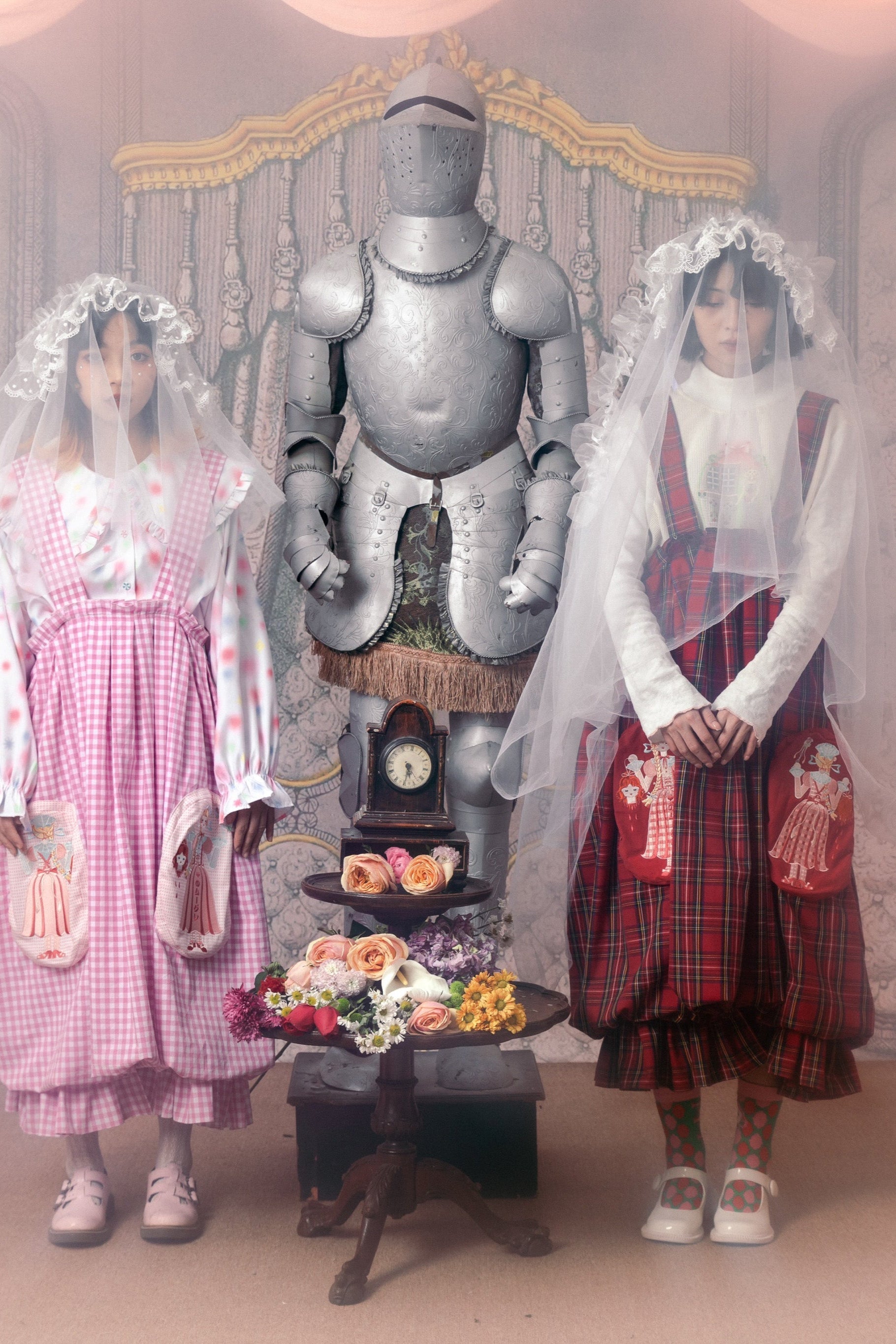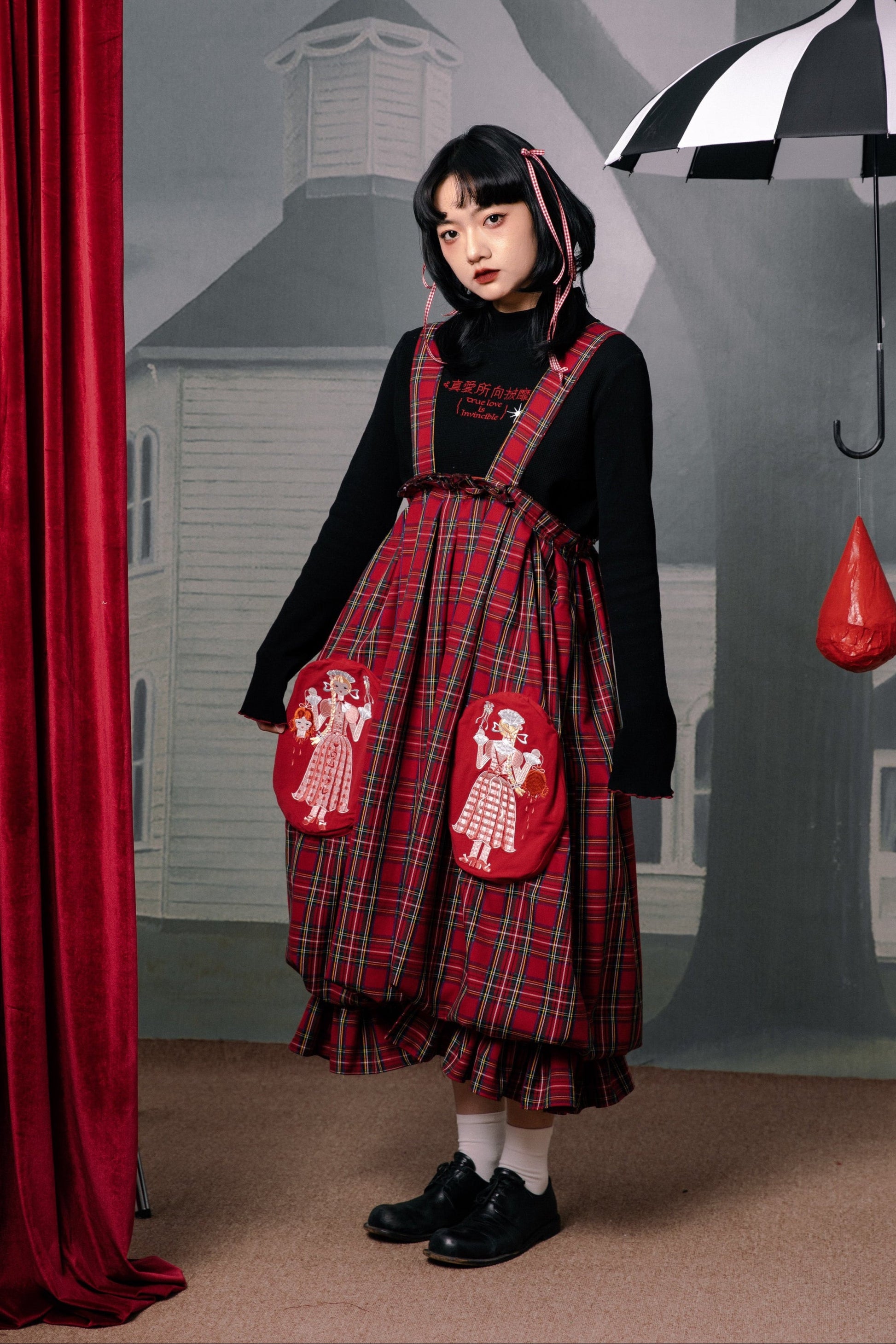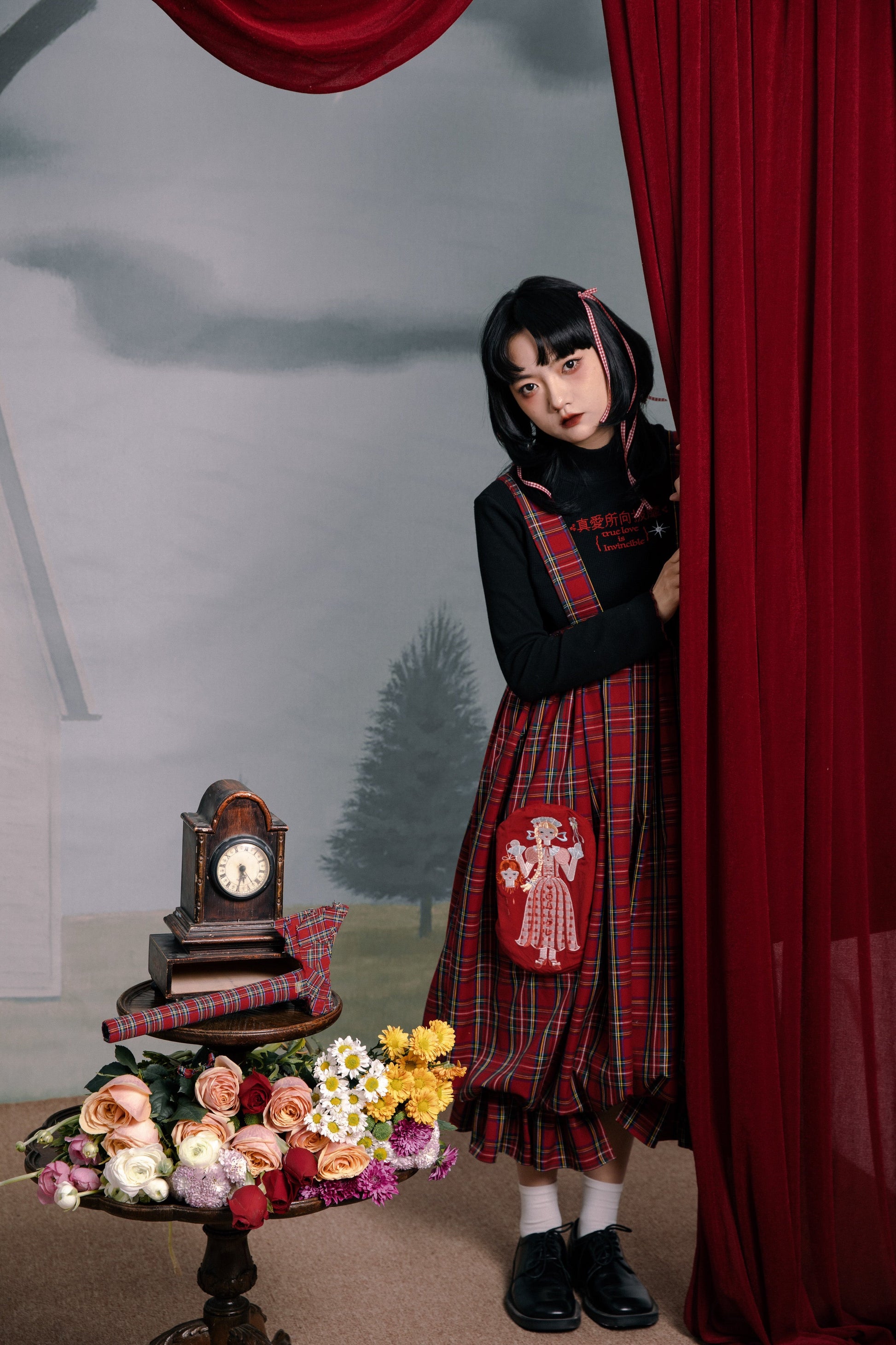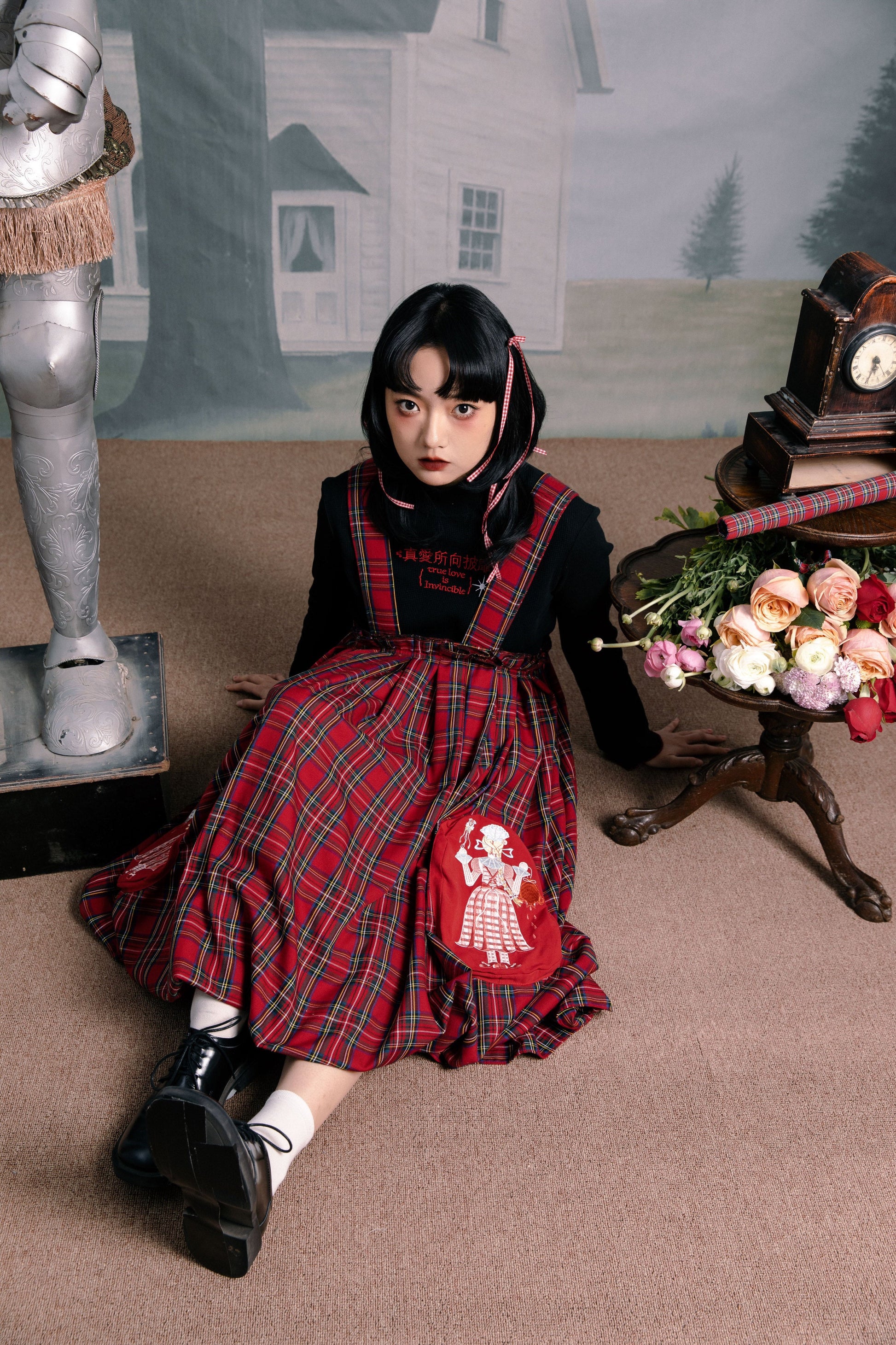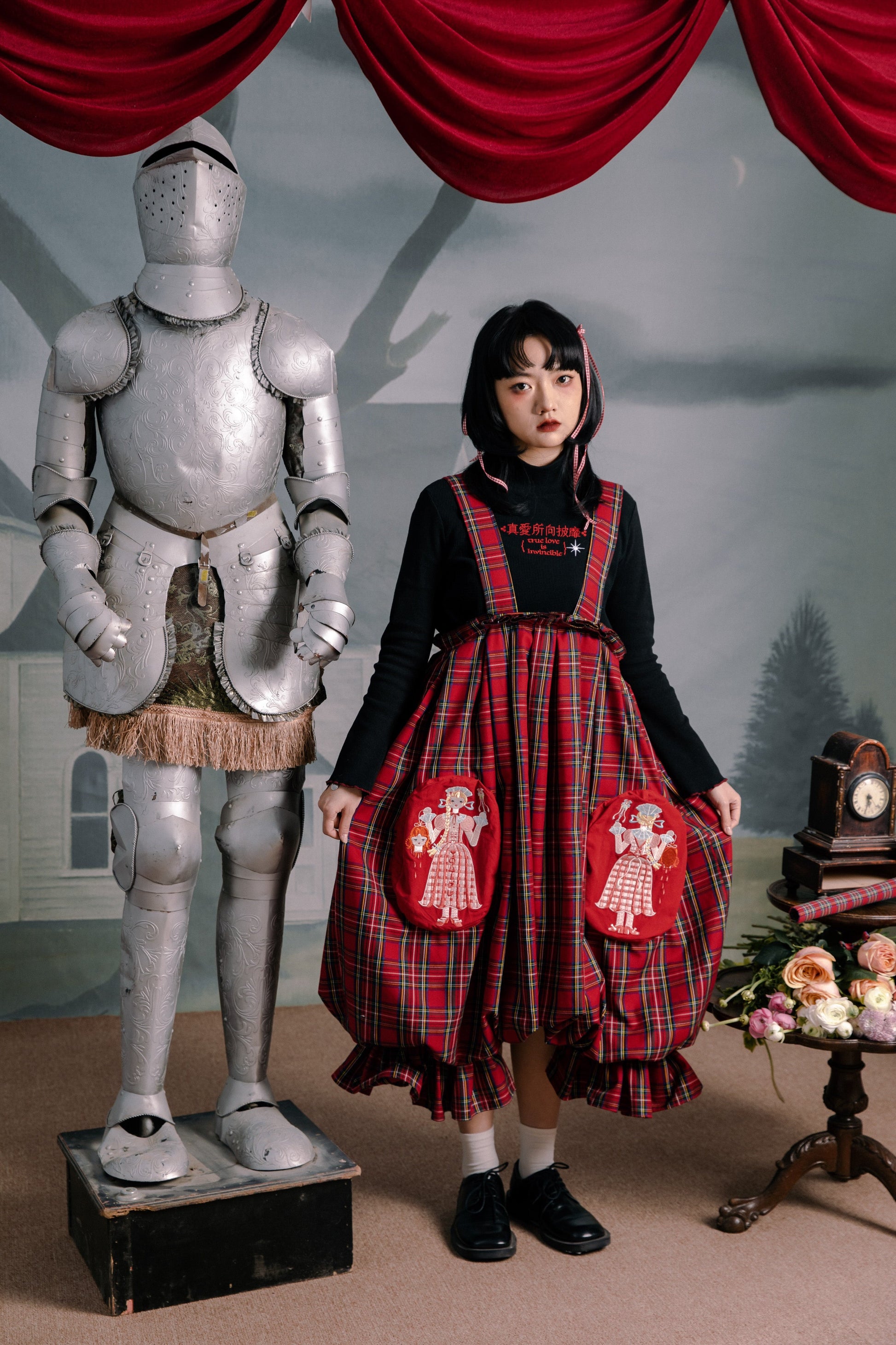 黒と白のオールドスクールロリータファッションドレス蝶結びロリータJSKセット
