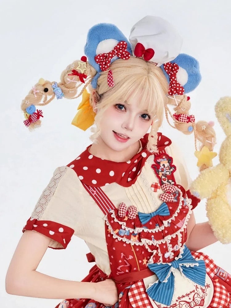 青と白のオールドスクールロリータファッションドレス 蝶結びディテール JSK セット