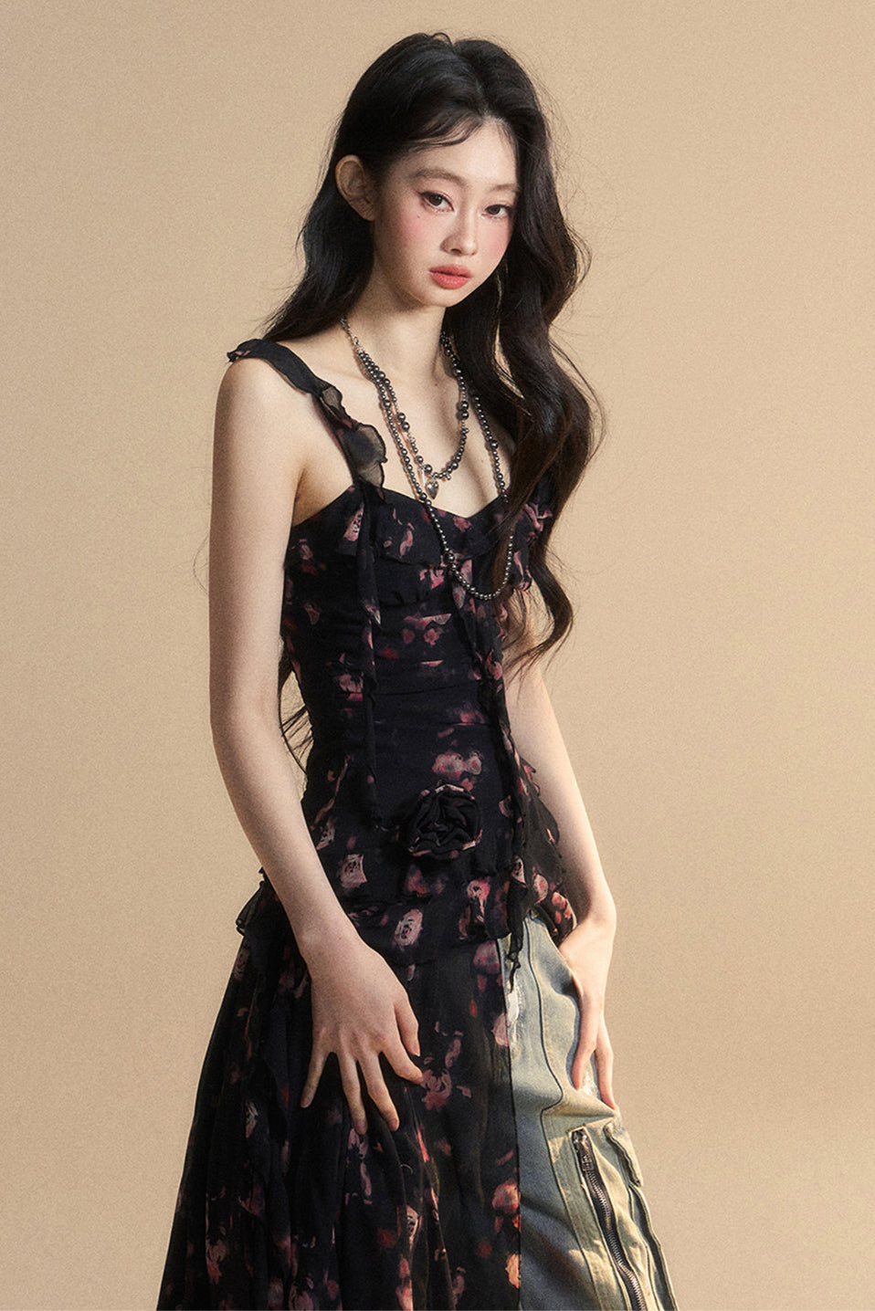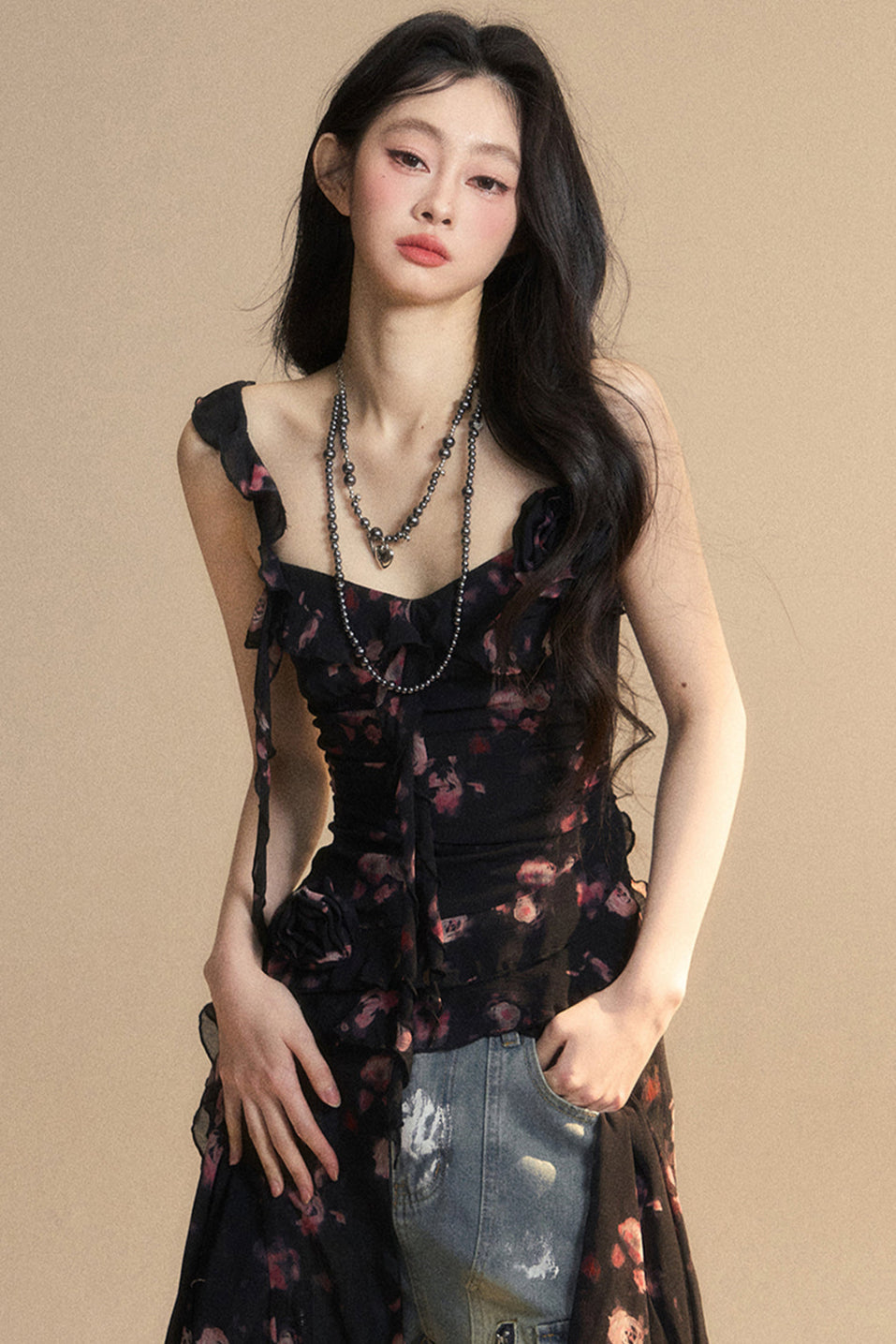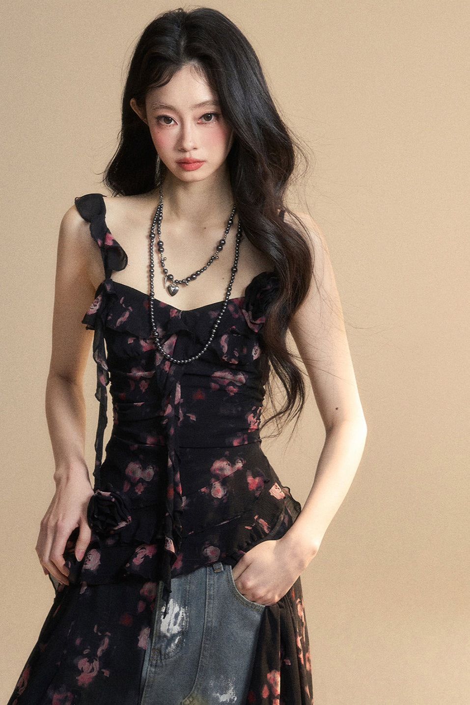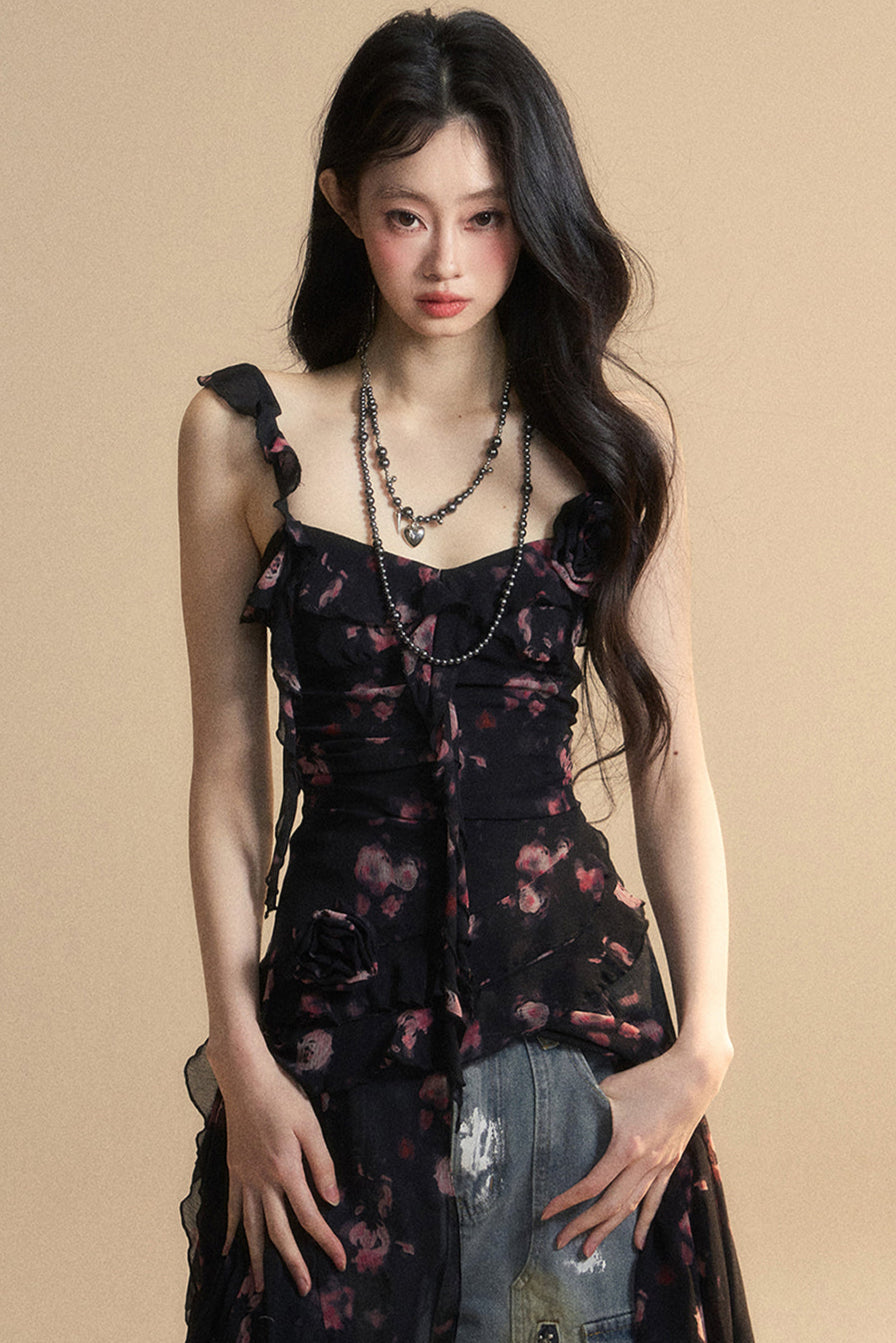 ❤予約商品 ワイルドフラワーシフォンアシンメトリーキャミソールトップス❤