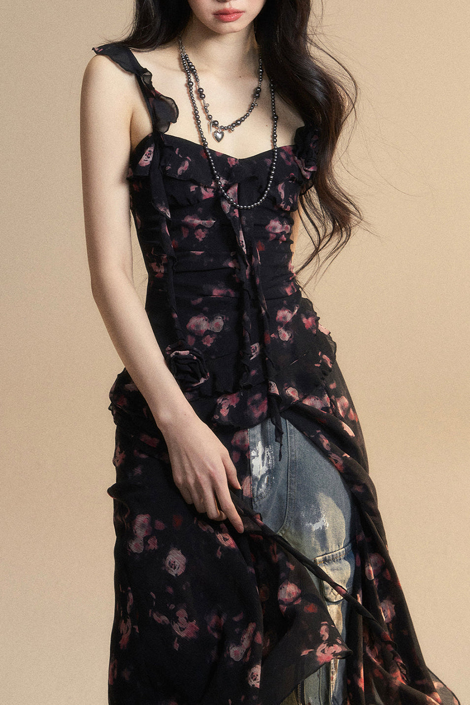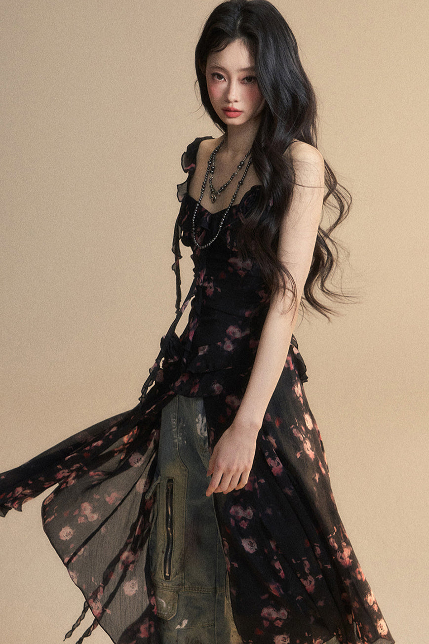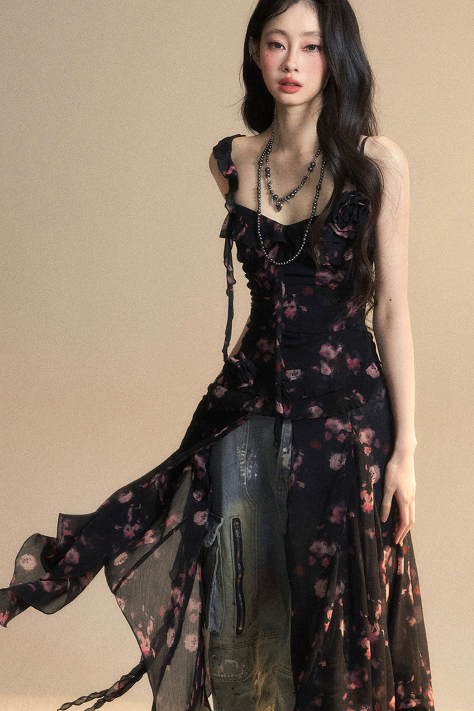 ❤予約商品 ワイルドフラワーシフォンアシンメトリーキャミソールトップス❤
