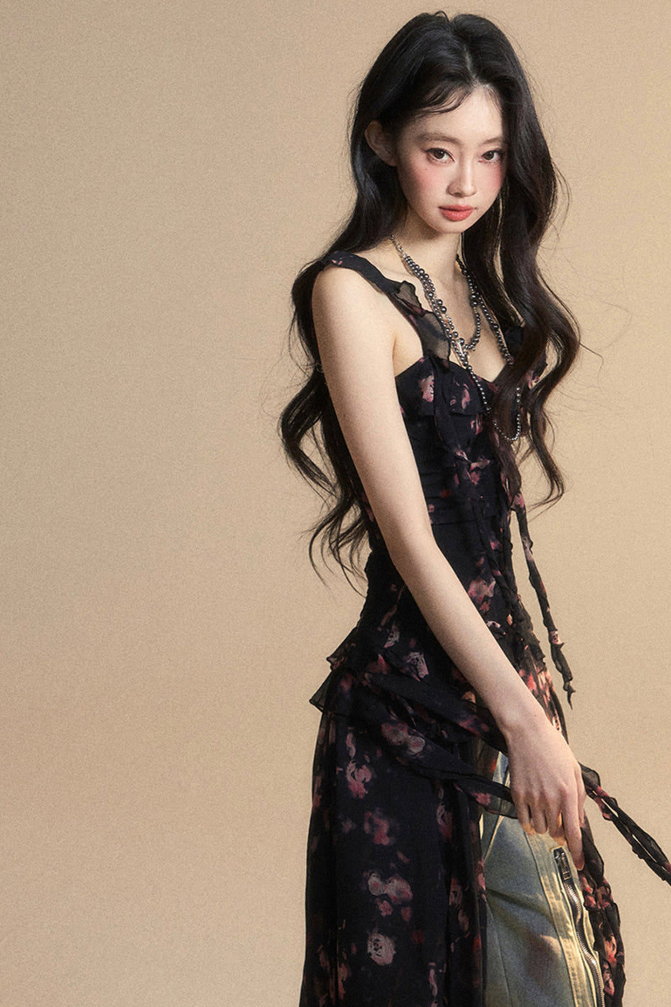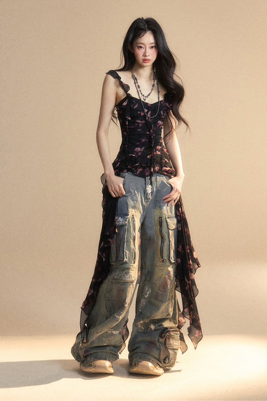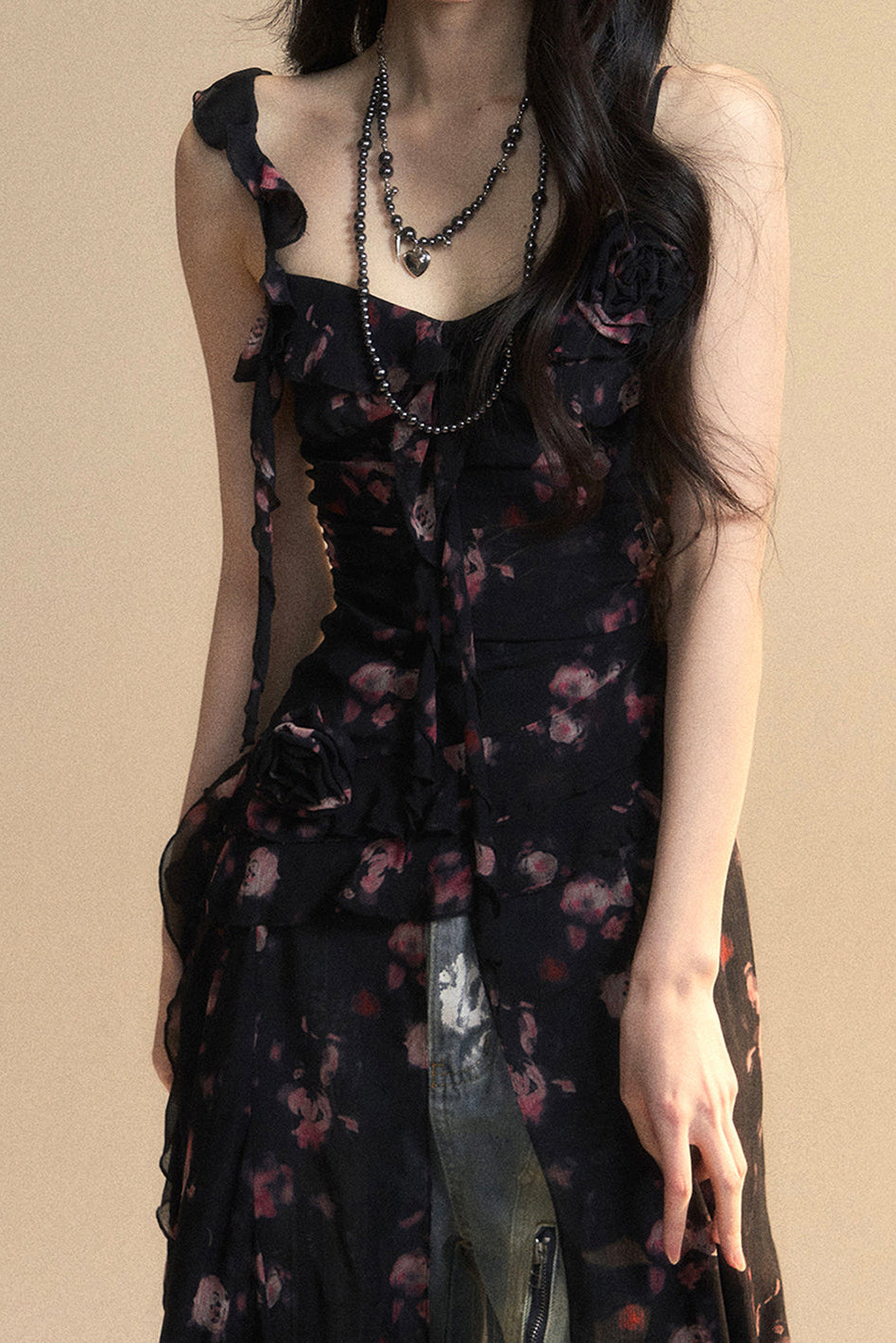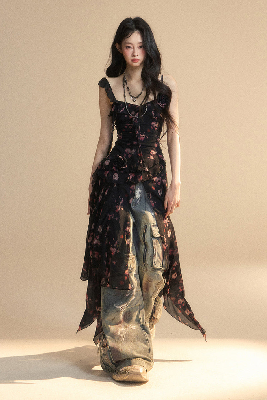 ❤予約商品 ワイルドフラワーシフォンアシンメトリーキャミソールトップス❤