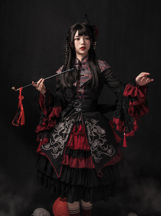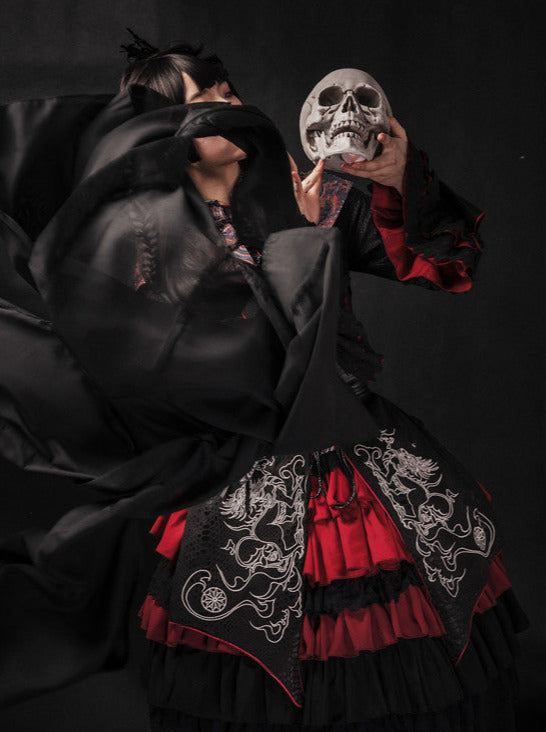 チャイナロリータゴゴシックケープ+ロングジャケット+キャミソール+スカート+ウエストバンド
