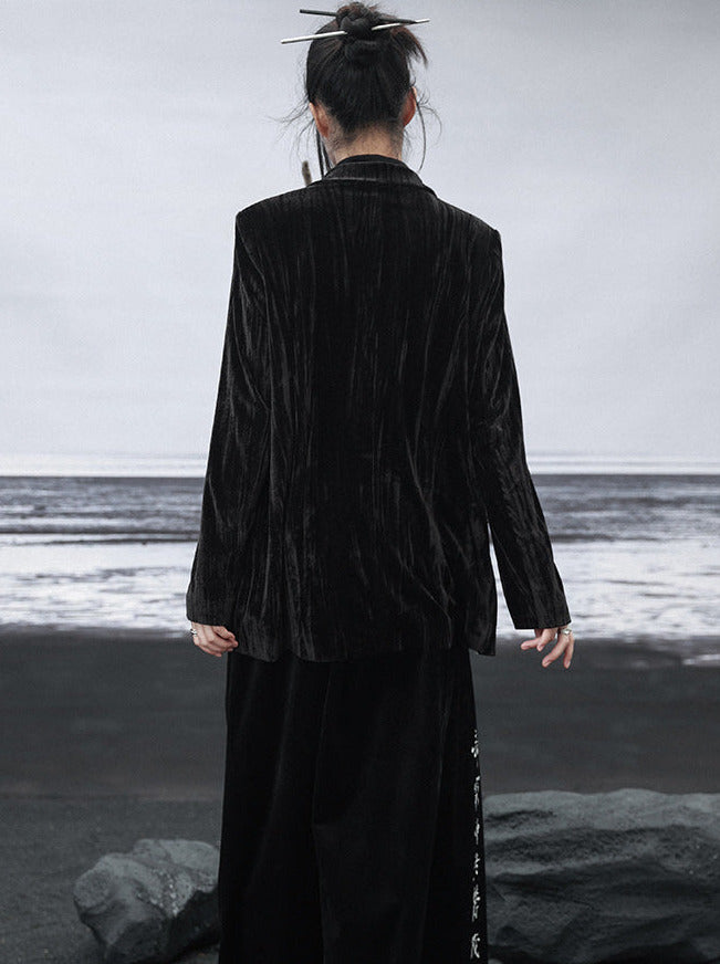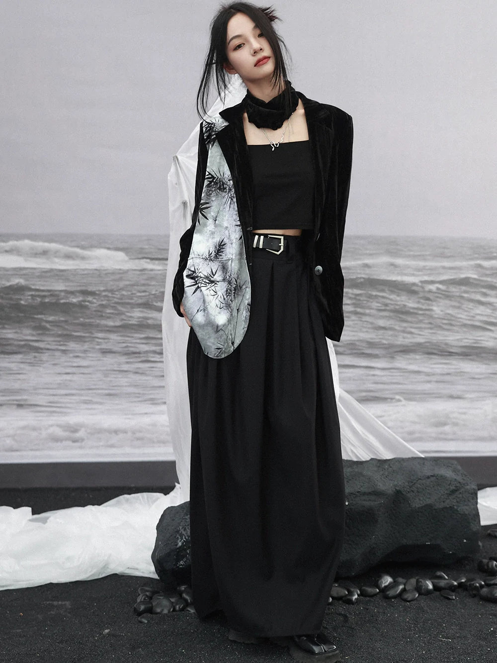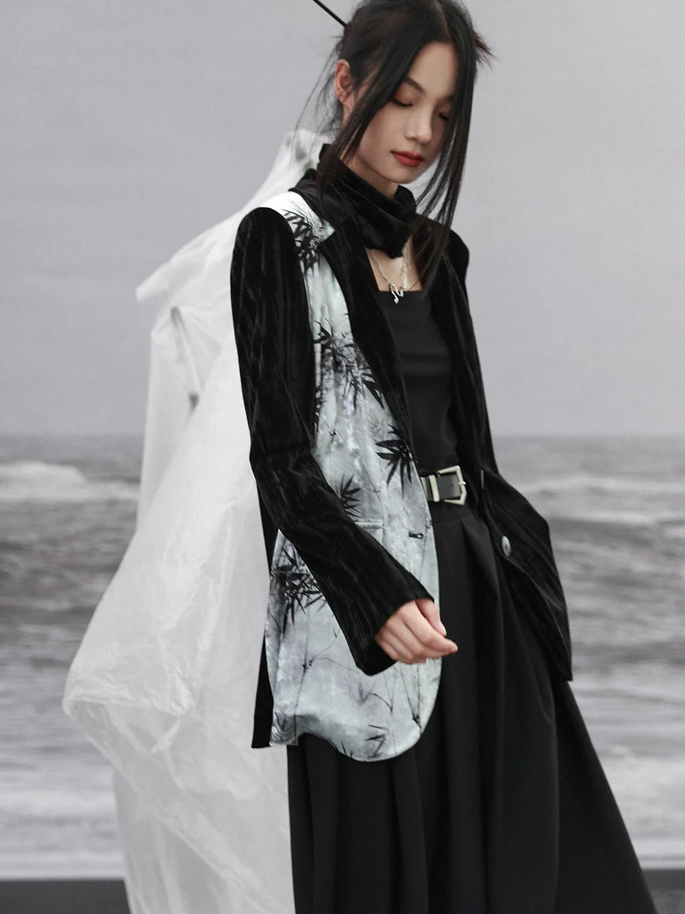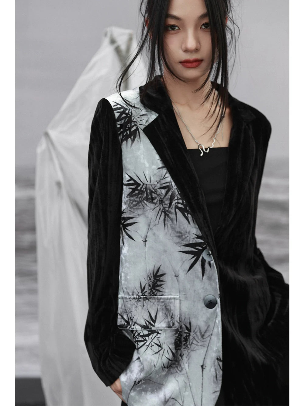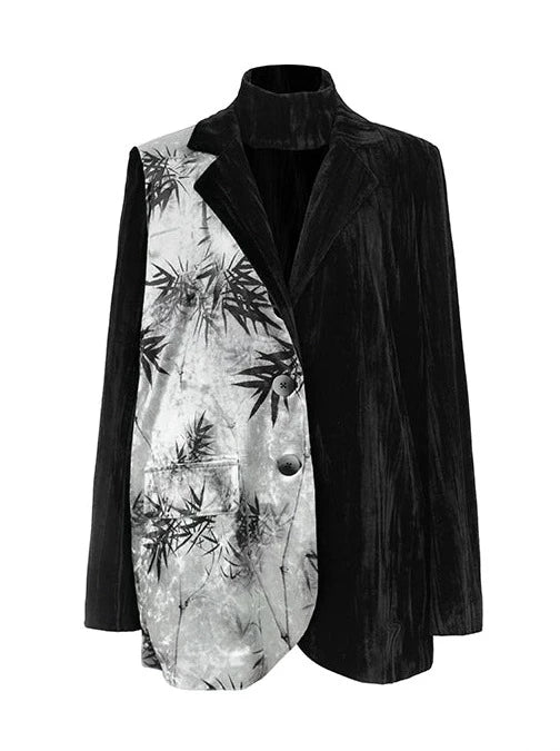 中国プリントジャケット コントラスト竹ベルベットカラースプライシング