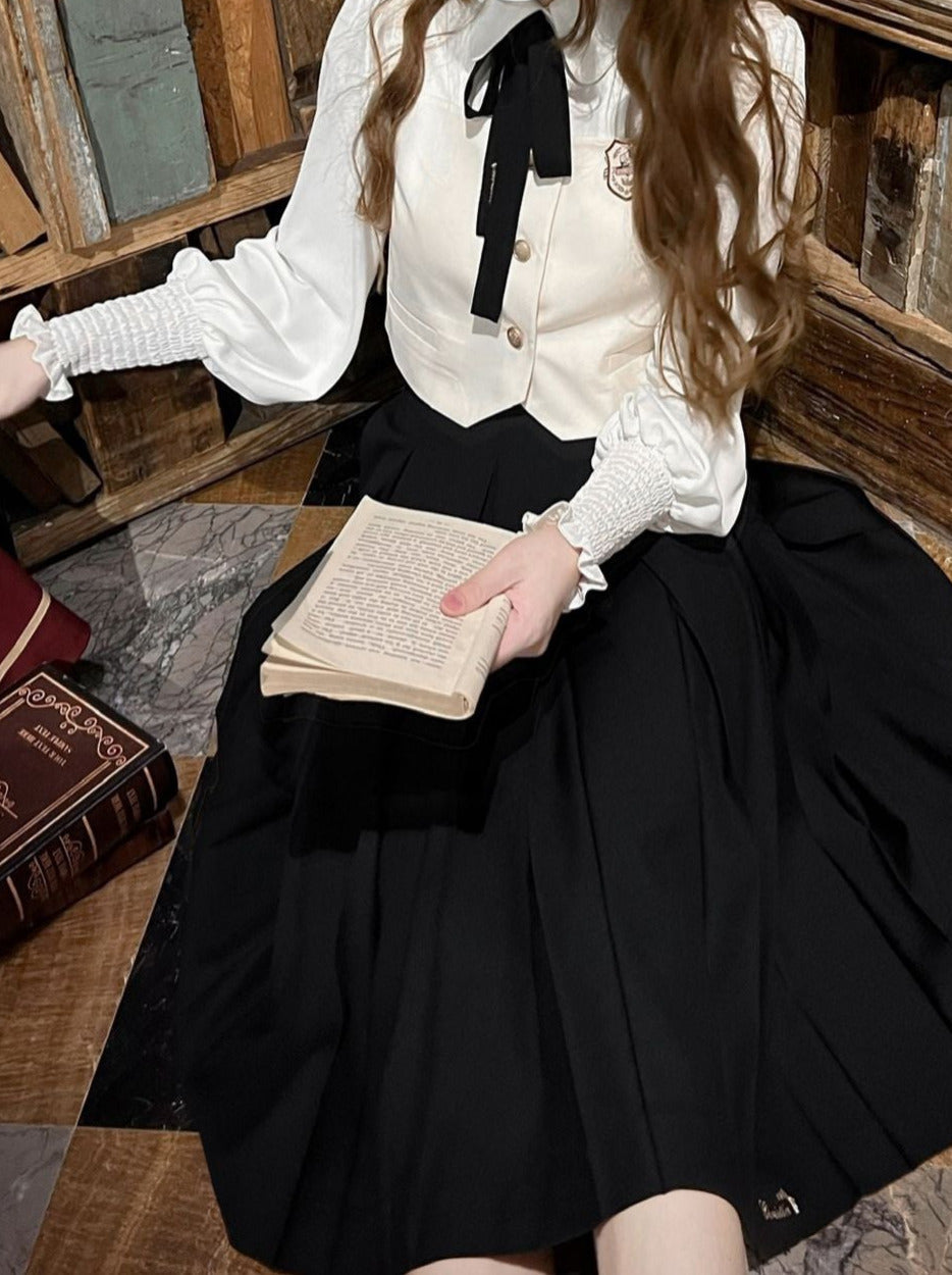 黒と白のオールドスクールロリータファッションドレス蝶結びロリータJSKセット