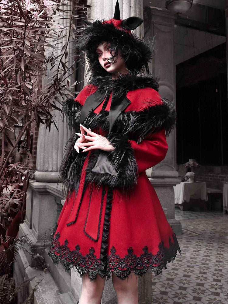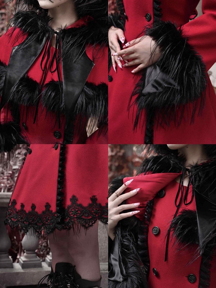 愛らしいクリスマスの新作でホリデー気分を盛り上げましょう!この赤いウールコートは、取り外し可能なケープが付いていて、暖かさと着回し力を高めてくれます。この冬は、華やかでスタイリッシュな装いを演出しましょう。
