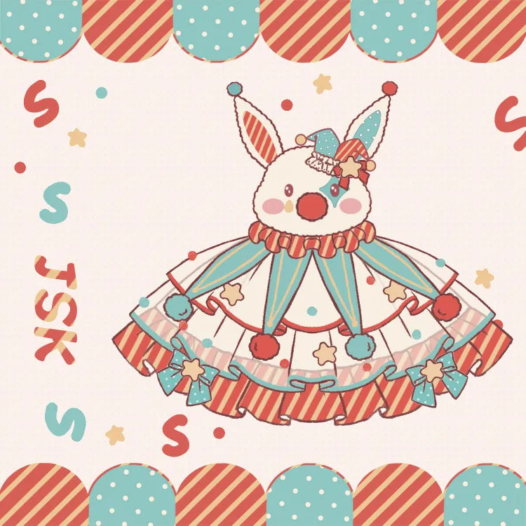 フリース ピエロ バニー ボディス グリーンとオレンジ サーカス スイート ロリータ オーバーオール パステル ピエロコア ドレス