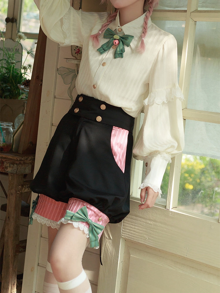 黒とピンクのサーカスバイブス王子ロリータブレザーカラーベスト+ハイウエストニッカボッカーズショーツ