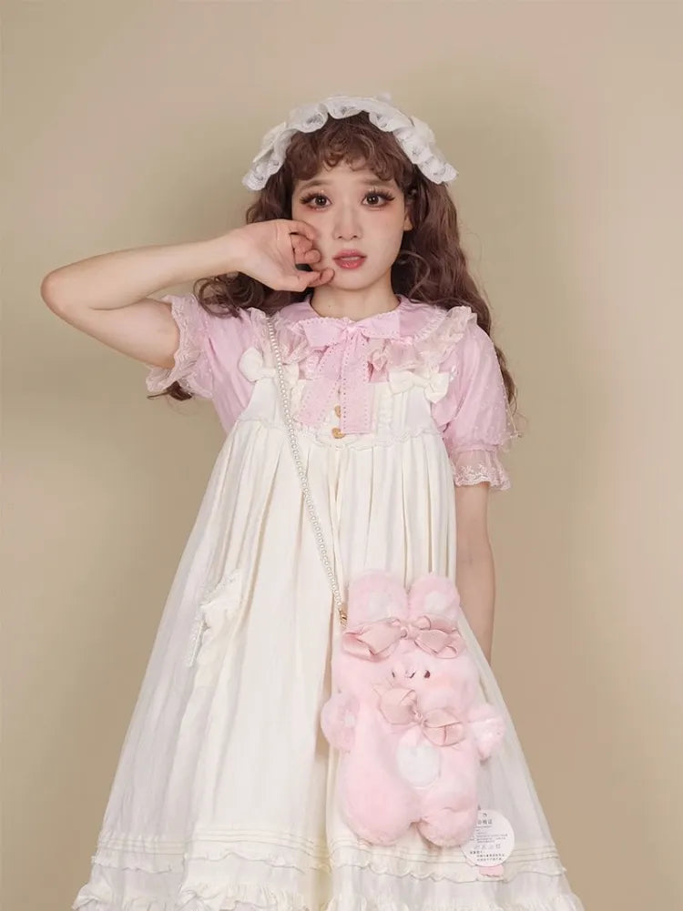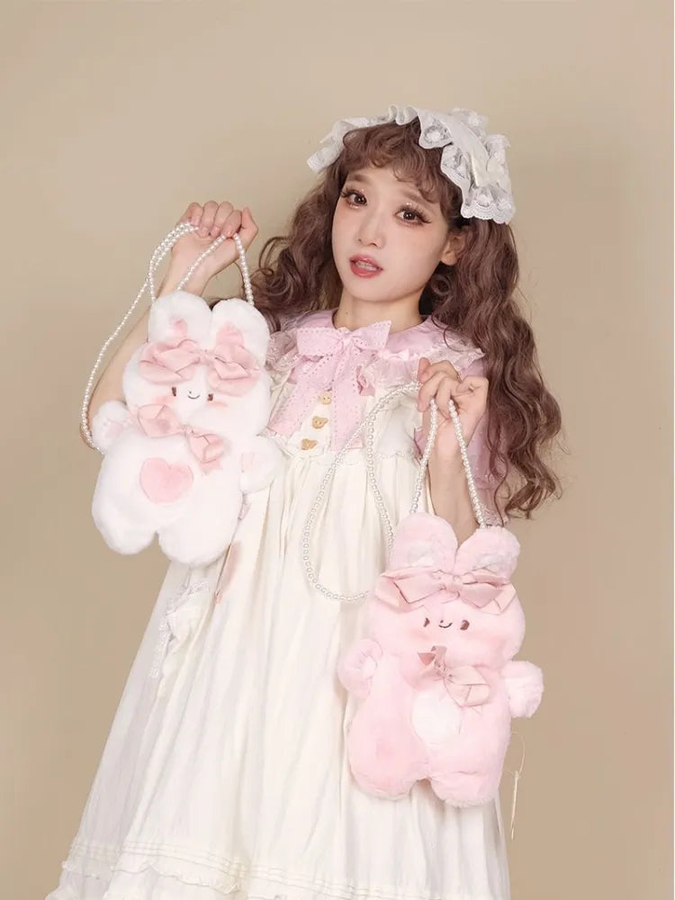 クリアランス-リボン付きピンクウサギ型クロスボディプラッシュディテール