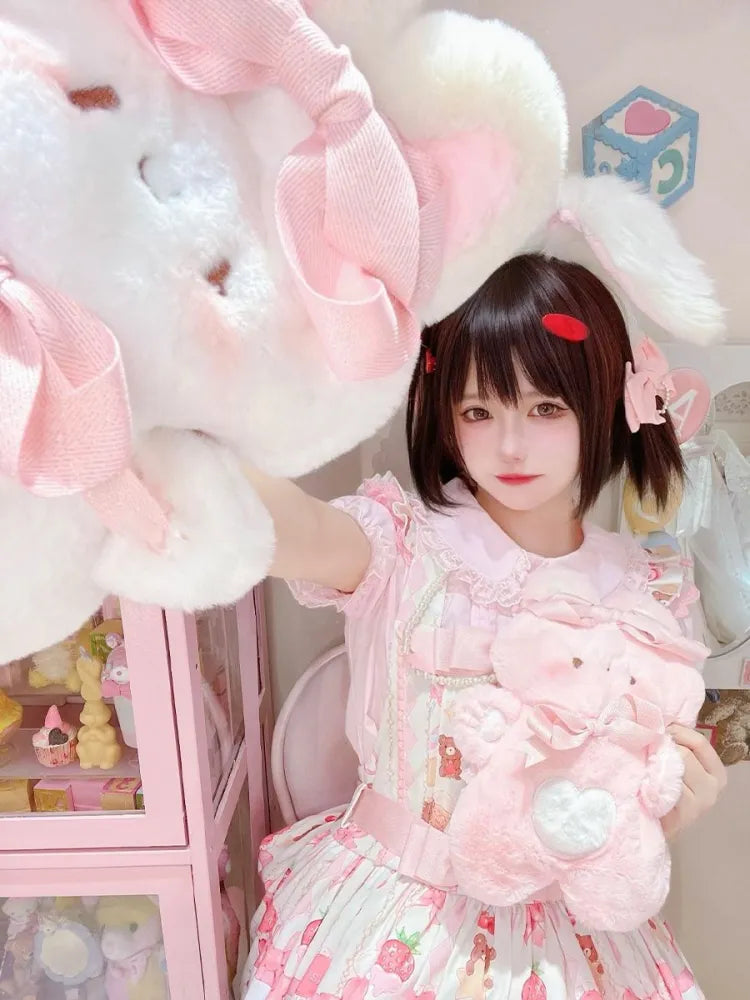 ピンクと白のオールドスクールロリータファッションドレス、蝶結びディテール、ロリータJSKセット