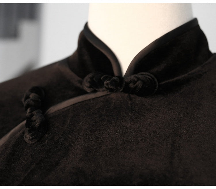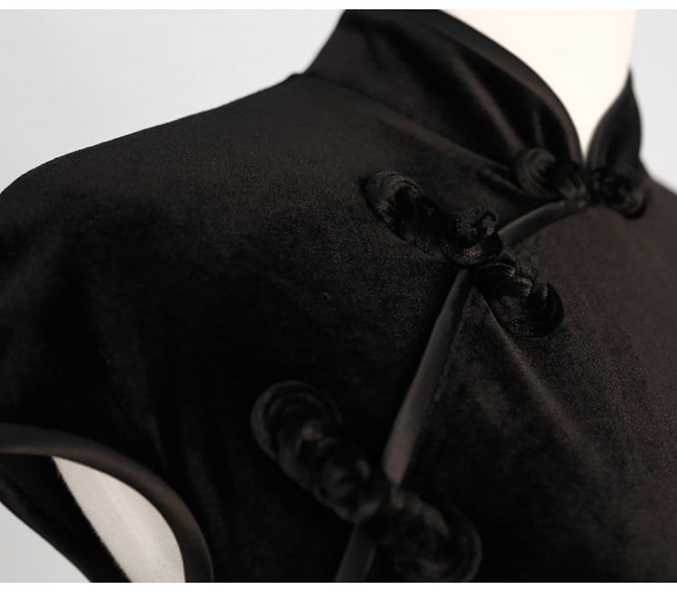 Closures Noir: Velvet Qipao Eastern Slit Black Frog Side with Traditional
