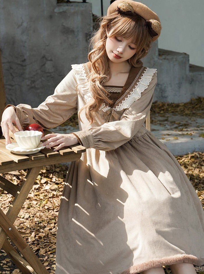 青と白のオールドスクールロリータファッションドレス 蝶結びディテール JSK セット