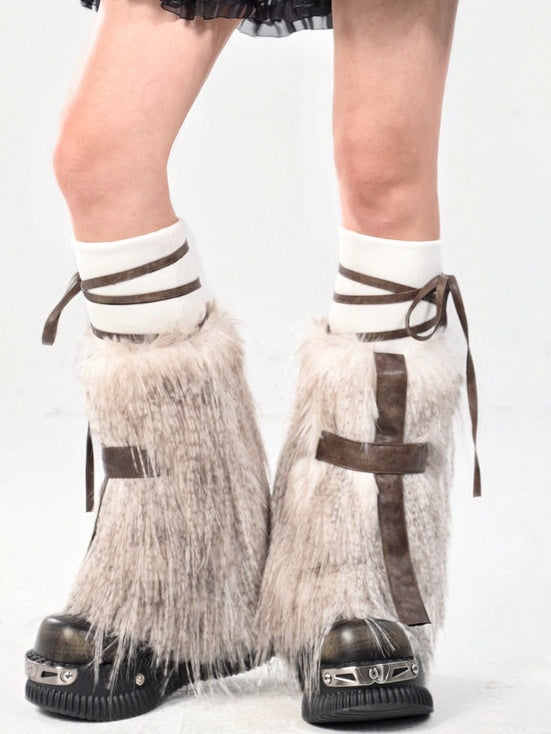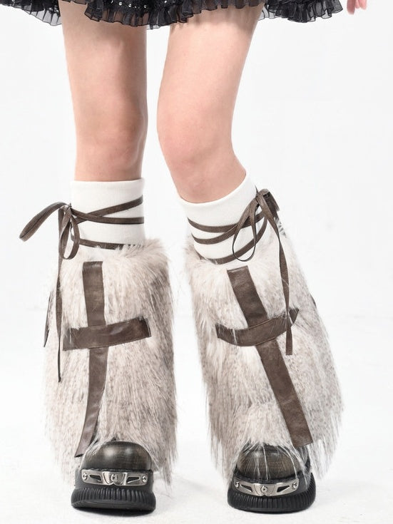 コーヒーゴシックPUクロスシャギーレッグウォーマー