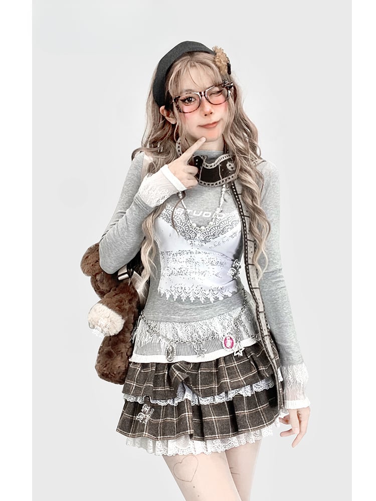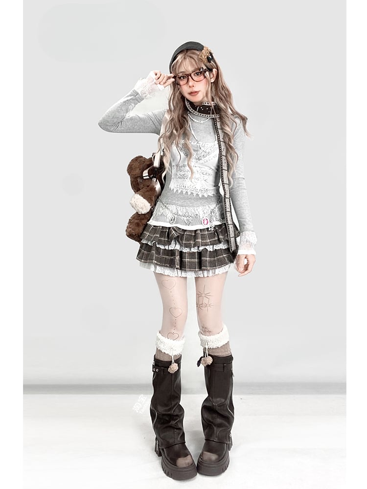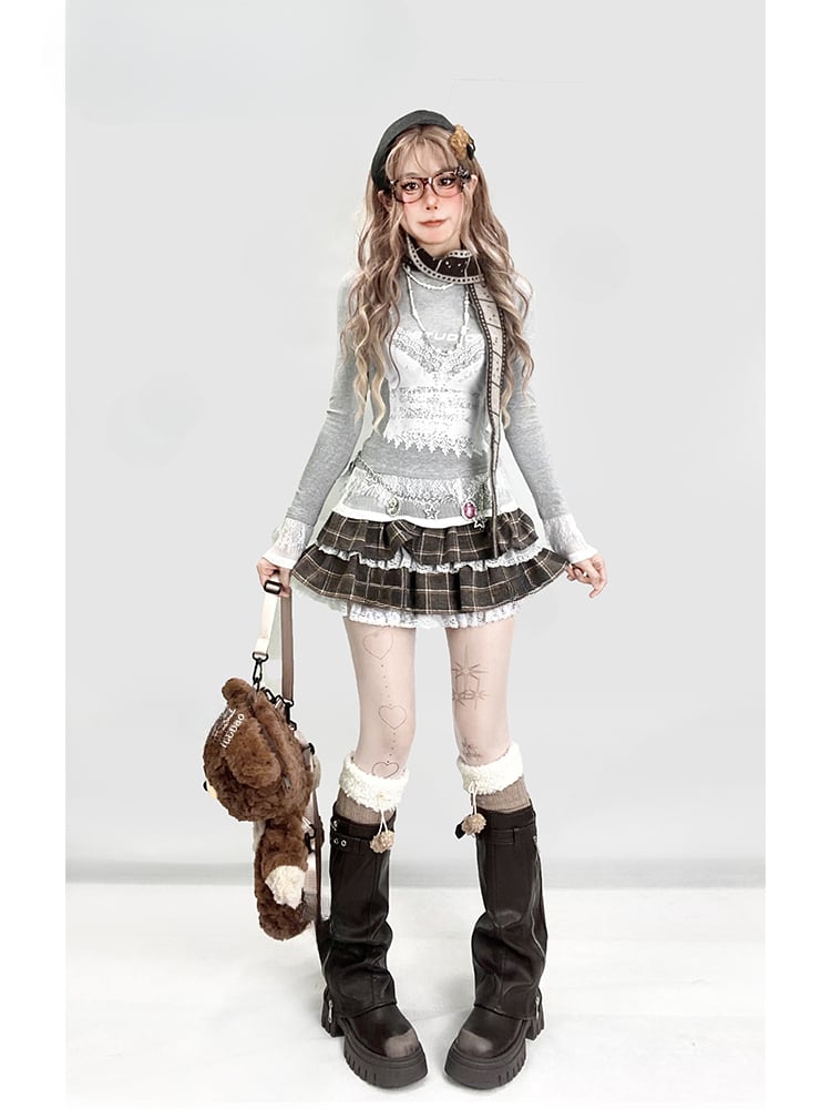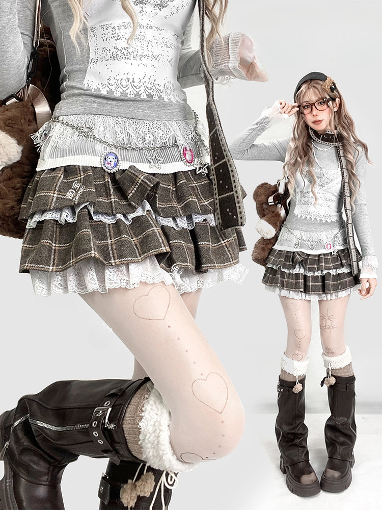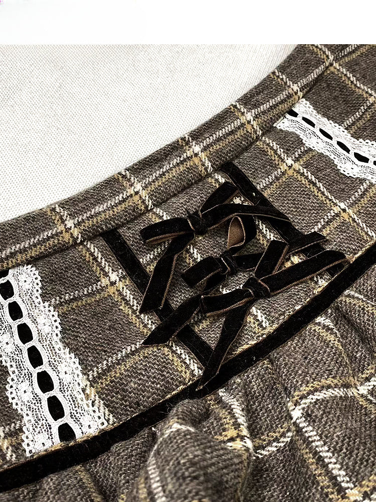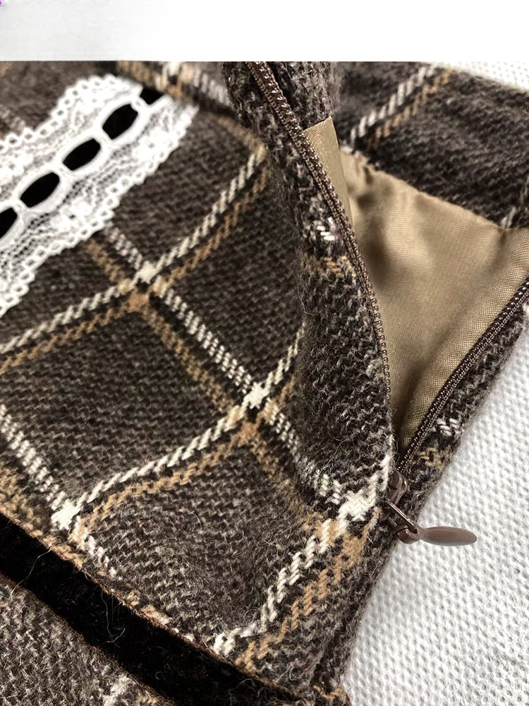 コーヒー色のチェック柄と繊細なレースの裾がチャーミングなアクセントを添える、愛くるしいスカート。ティアードデザインが遊び心を加え、快適な生地はデイリーユースにぴったり。このマストハブスカートで、あなたのキュートさを存分に満喫してください!