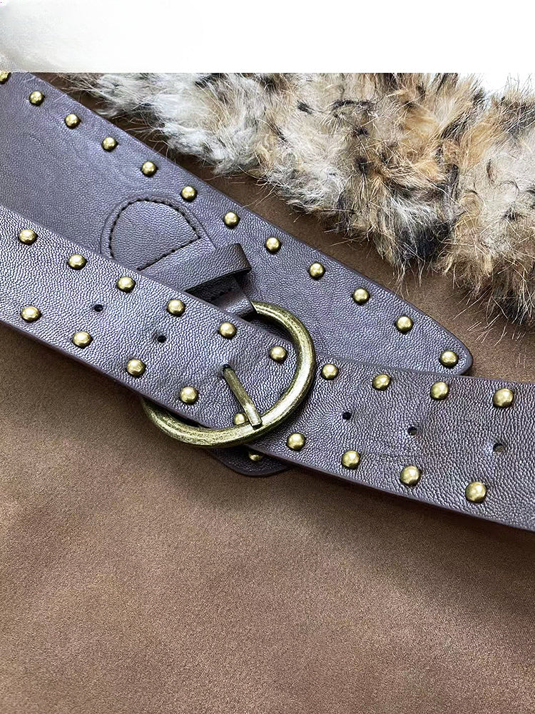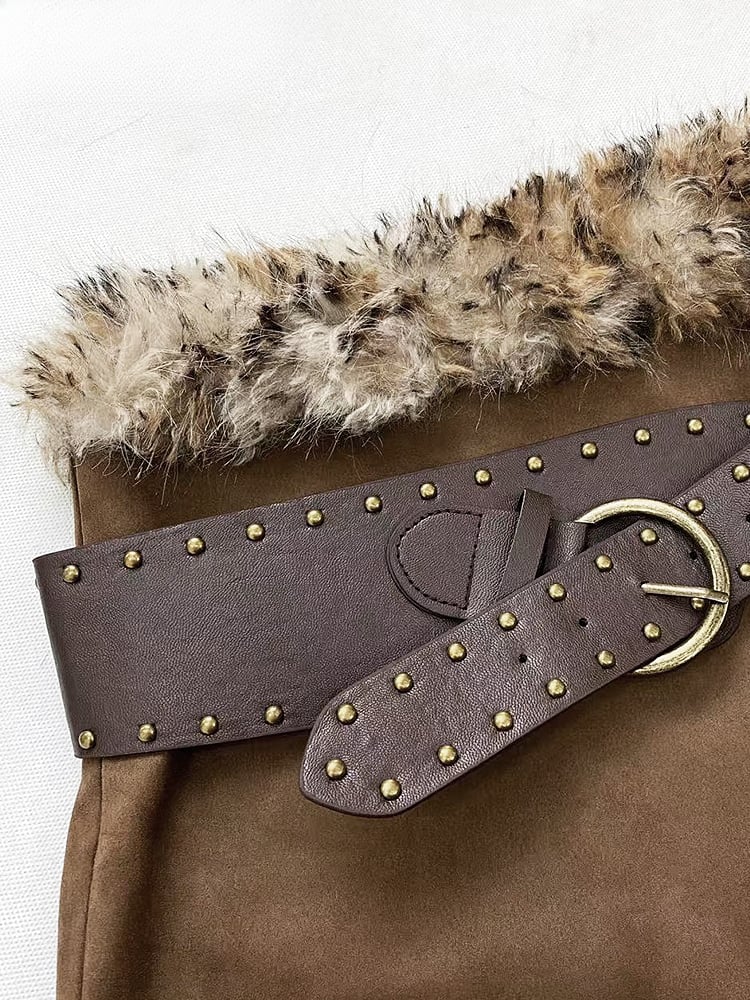 バックルベルト付きコーヒーシャギーウエストラインスカート