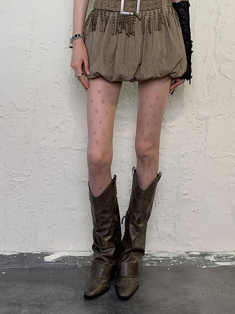 コーヒーウェイストランドフローラルスタープリントタイツ