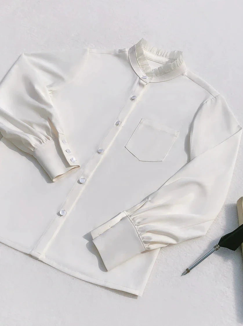 襟コサージュドレスで、スタイリッシュでスイートな装いを演出!ニットのフリルスリーブと上品な日本製リボンがフェミニンな雰囲気を添える、レトロなシャツベスト。どんなシーンにもぴったりで、ワードローブに欠かせないアイテムです。