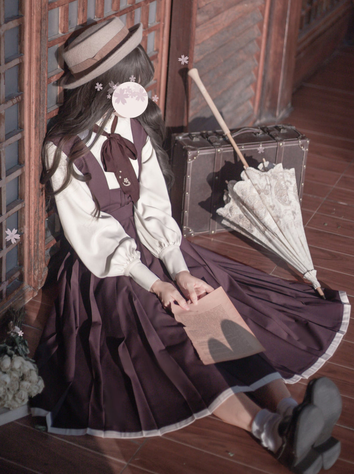 黒と白のオールドスクールロリータファッションドレス蝶結びロリータJSKセット