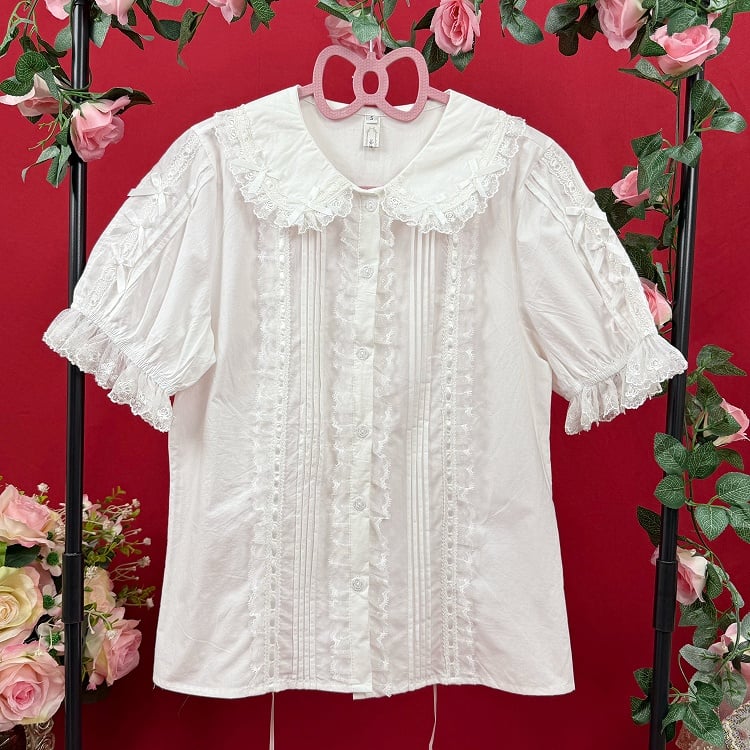 襟付きコットンロリータホワイトスリーブピーターブラウスパンスウィートショート