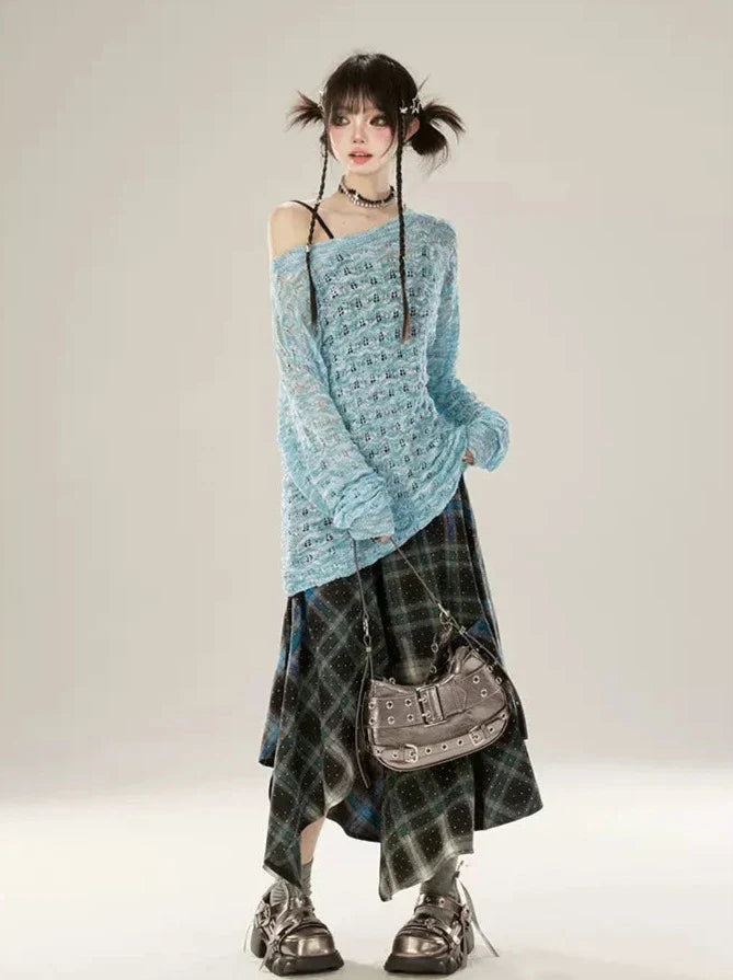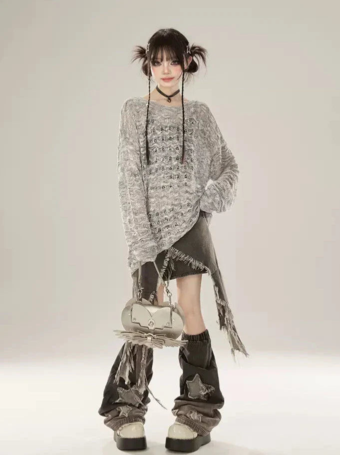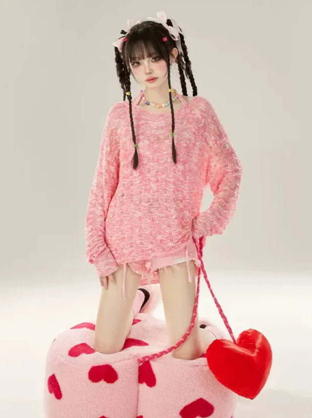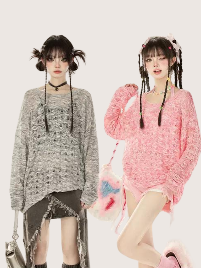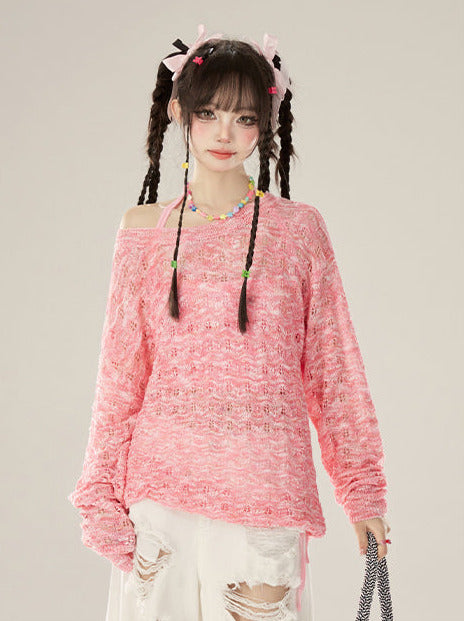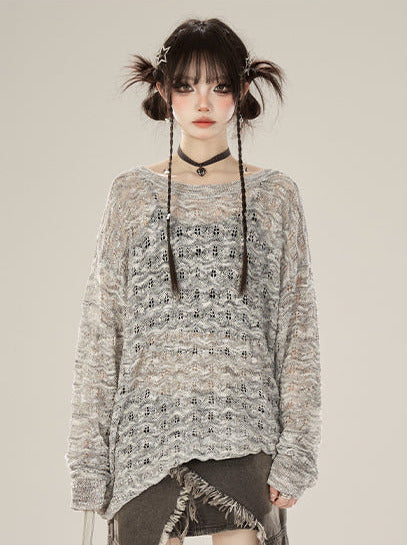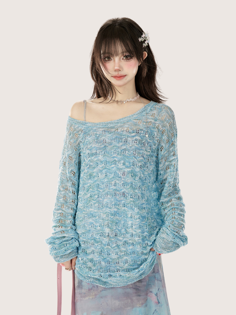 襟付きプルオーバーニット日焼け止めシースルーソールルーズ
