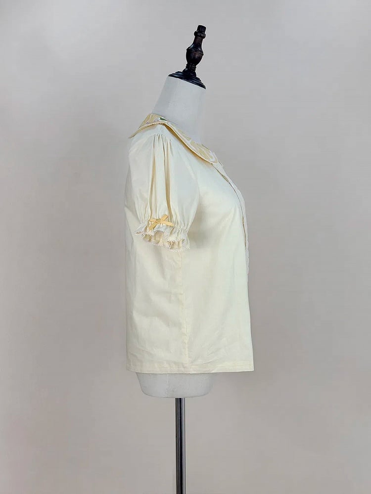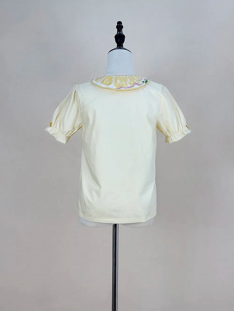 襟付きショート丈イエローレモンパンシャツ ピータープリントスリーブ