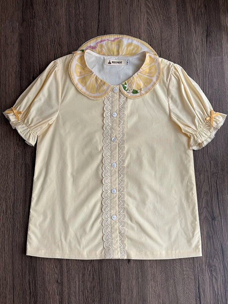 レモンプリント ピーターパンカラー イエロー 半袖シャツ