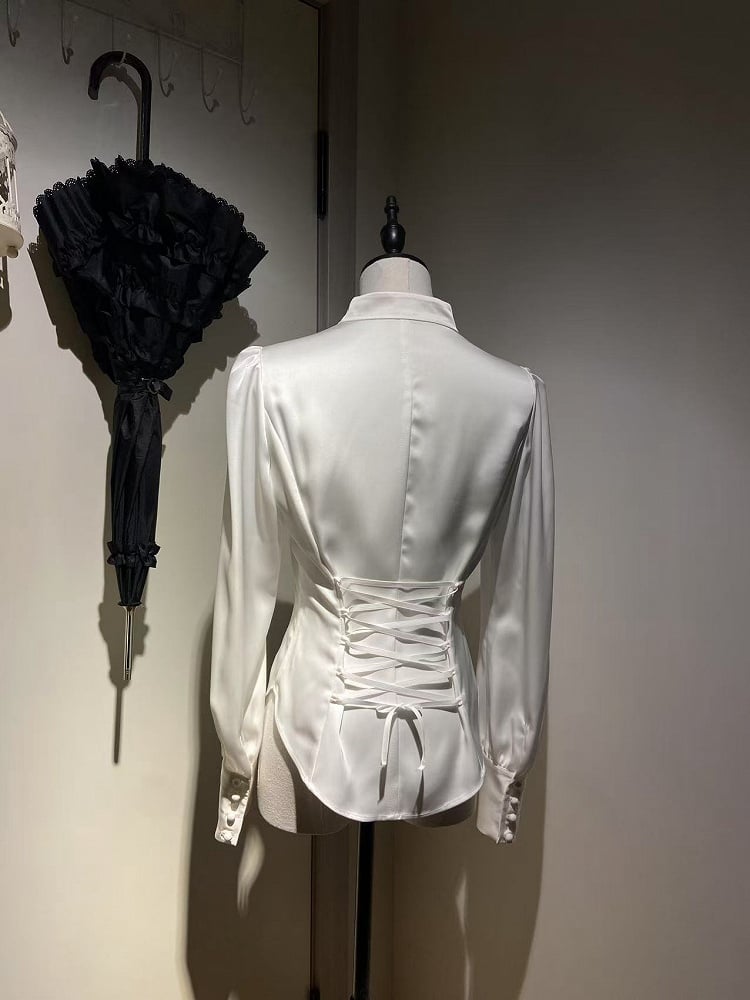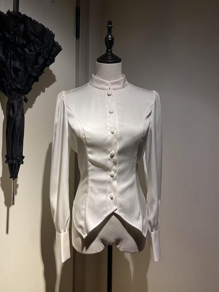 襟付き袖付きホワイトマンダリンシャツ王子ロングロリータ